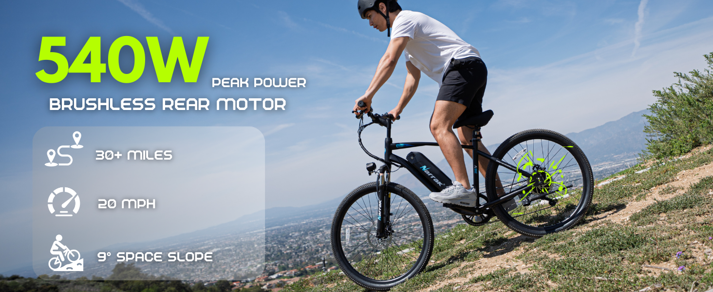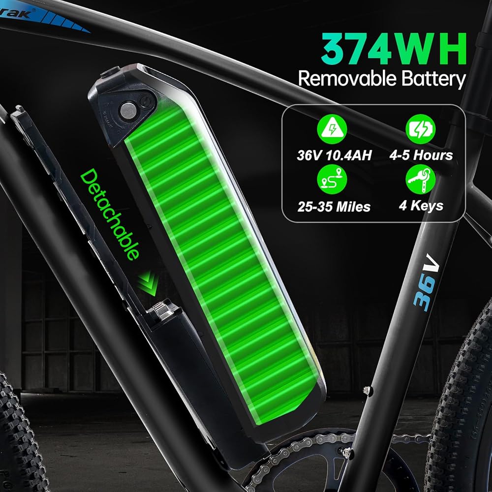 【Large Capacity Hidden Removable Battery】Say goodbye to frequent recharging. The Narrak eBike features a robust 500Wh/10.4Ah battery that provides a range of 30+ miles (in pedal assist mode) on a single charge without having to worry about running out of power.