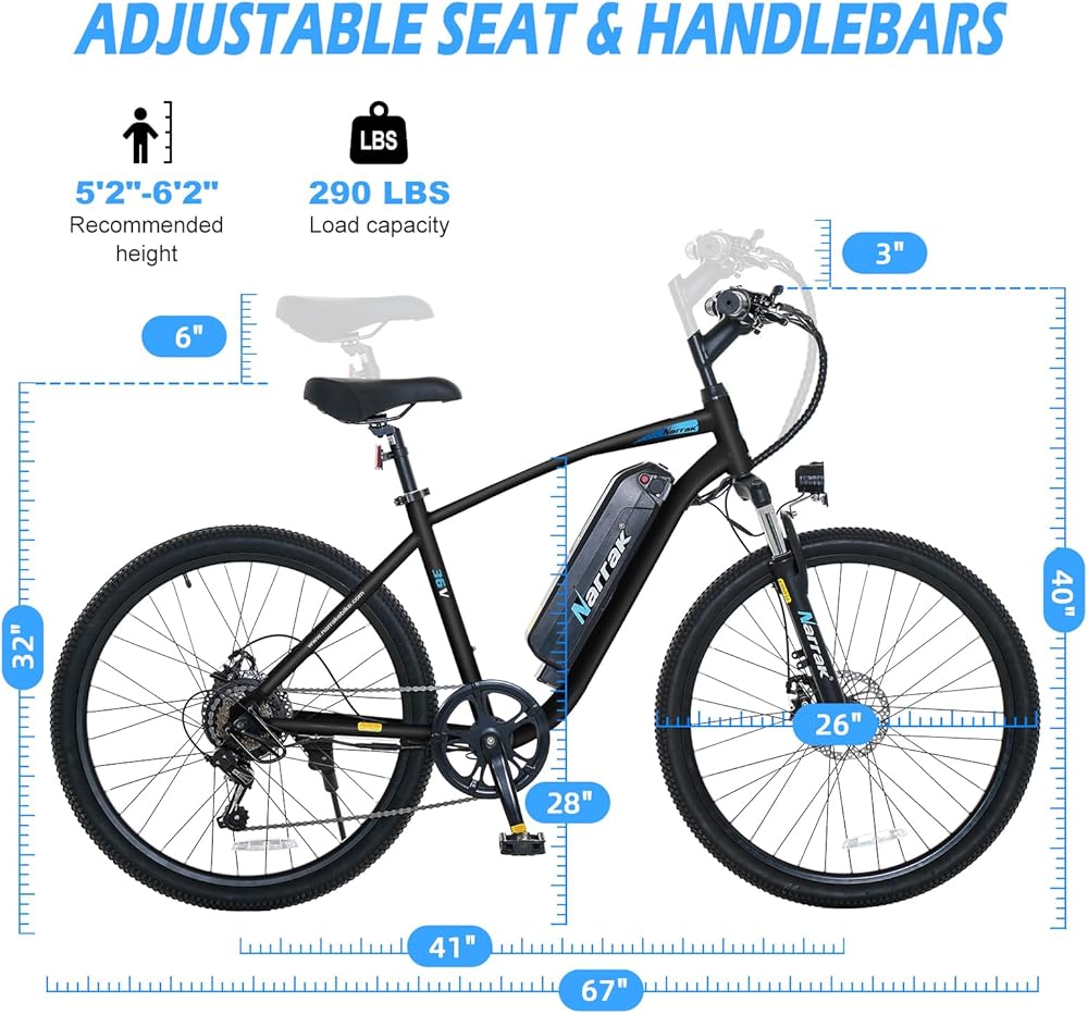 【2.125" Wider Tires】The Narrak electric bicycle comes with 26"*2.125" tires, which provide better comfort, stability and grip than regular 1.95" tires.