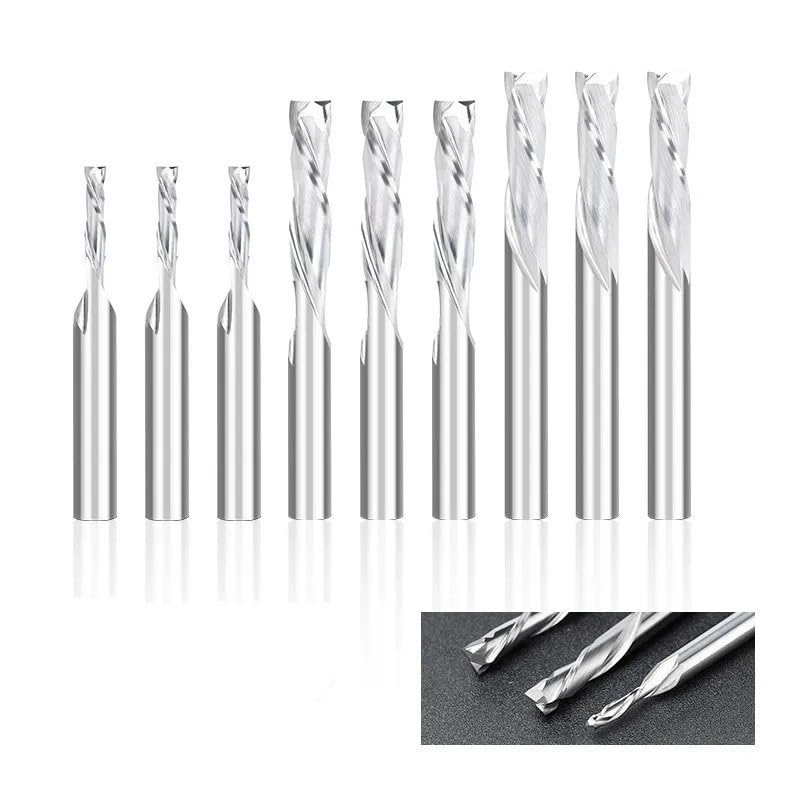 7 قطع لأعلى وأسفل لقم القطع 1/4 بوصة عرقوب قاطعة طحن الخشب اثنين من كربيد الناي الحلزوني باستخدام الحاسب الآلي لقم التوجيه ضغط نهاية مطحنة 1/8 قطر القطع