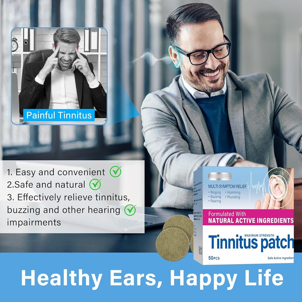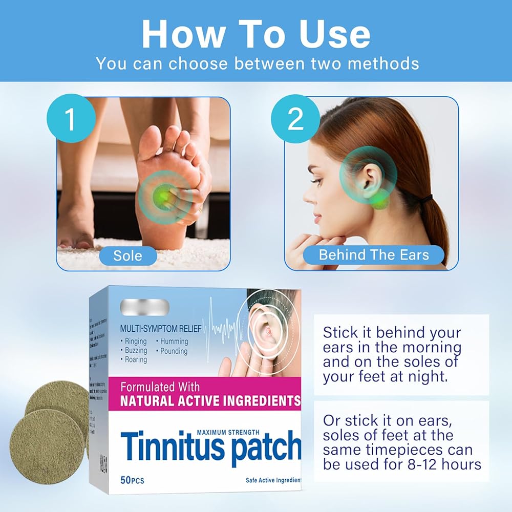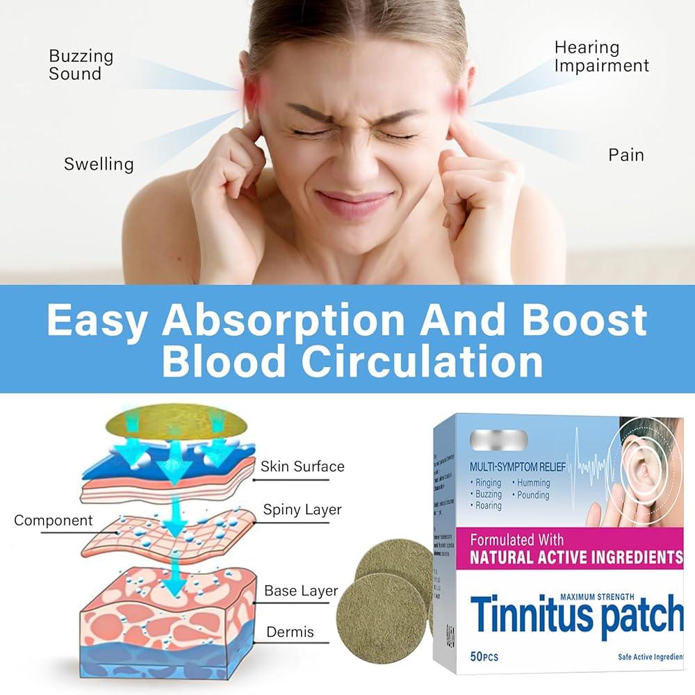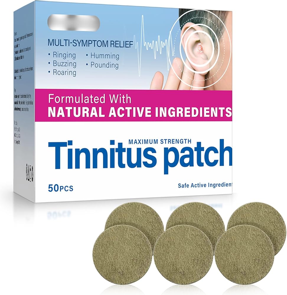 تخفيف طنين الأذن لطنين الأذن، 50 قطعة من رقع تخفيف طنين الأذن - تركيبة طبيعية سريعة المفعول لتقليل الرنين والطنين، تدعم صحة السمع، غير مهيجة للارتداء طوال اليوم