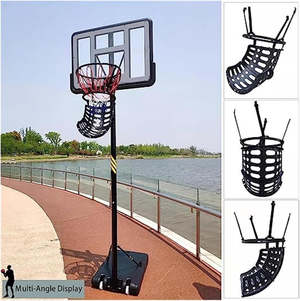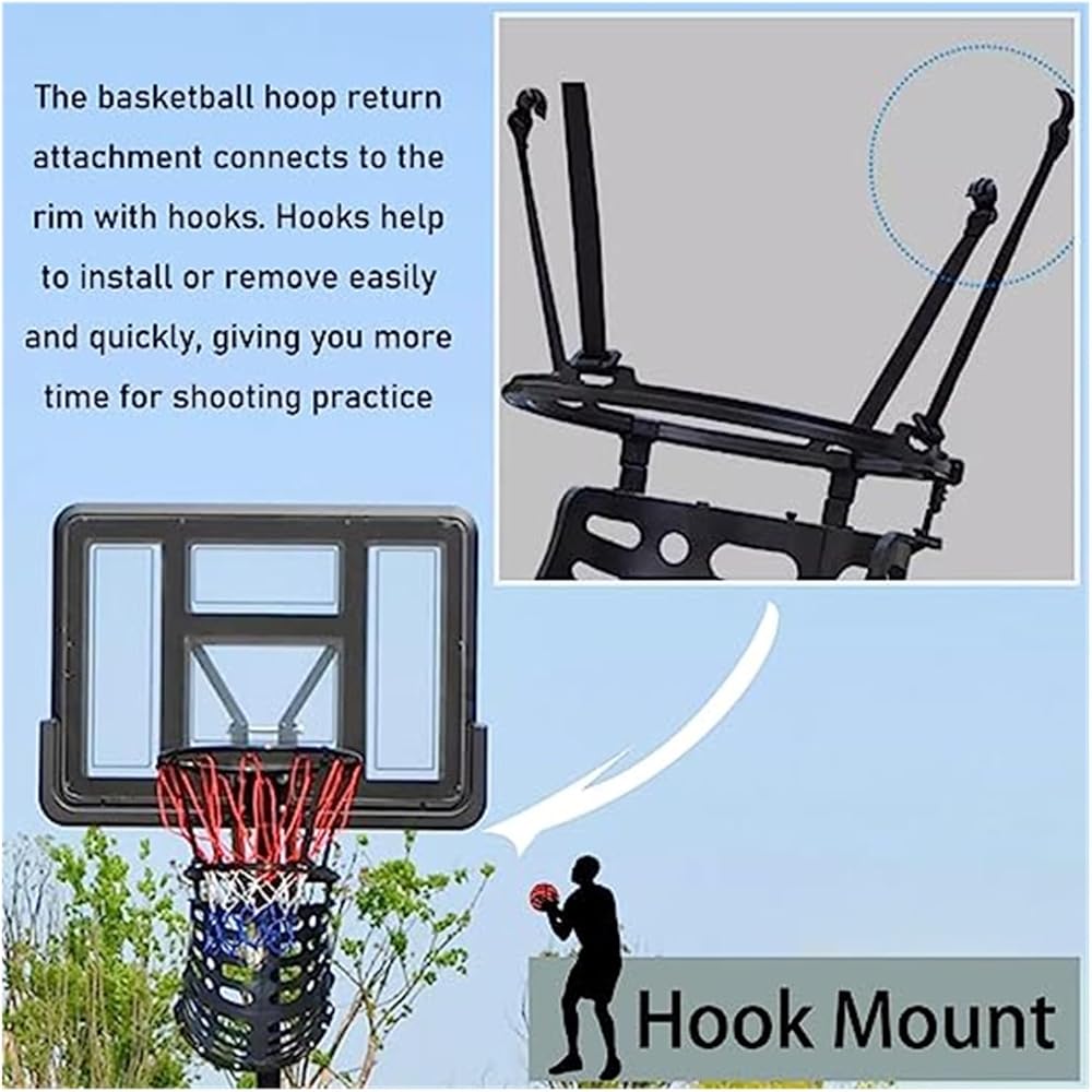 Basketball Hoop Returner : Your kids can use the hook design of the basketball rebounder to hang the rebounder on the basketball hoop rimLight weight and easy to carryEasy to assemble and disassemble anytime anywhere suitable for travel training.