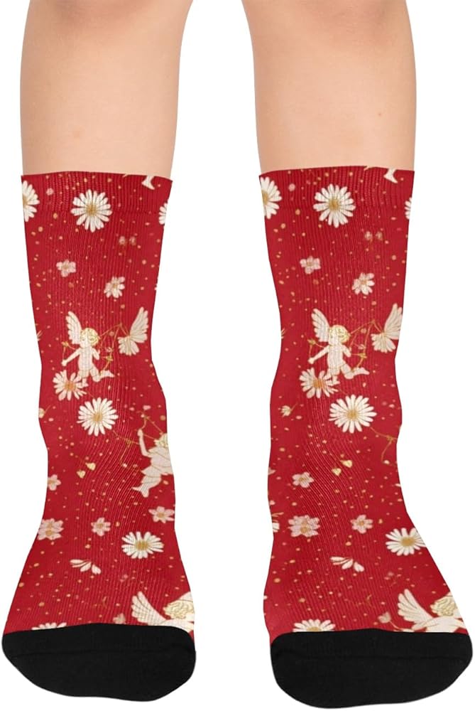 جوارب Red Daisy Angel Art للمشي لمسافات طويلة - جوارب شتوية حرارية سميكة دافئة للأطفال الصغار للأولاد والبنات للمدرسة، والارتداء اليومي والأنشطة الخارجية