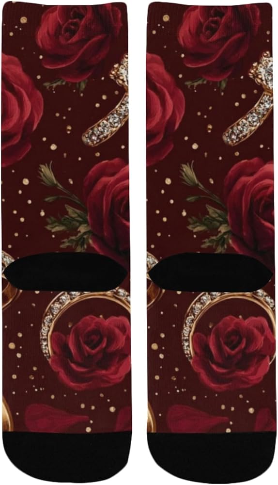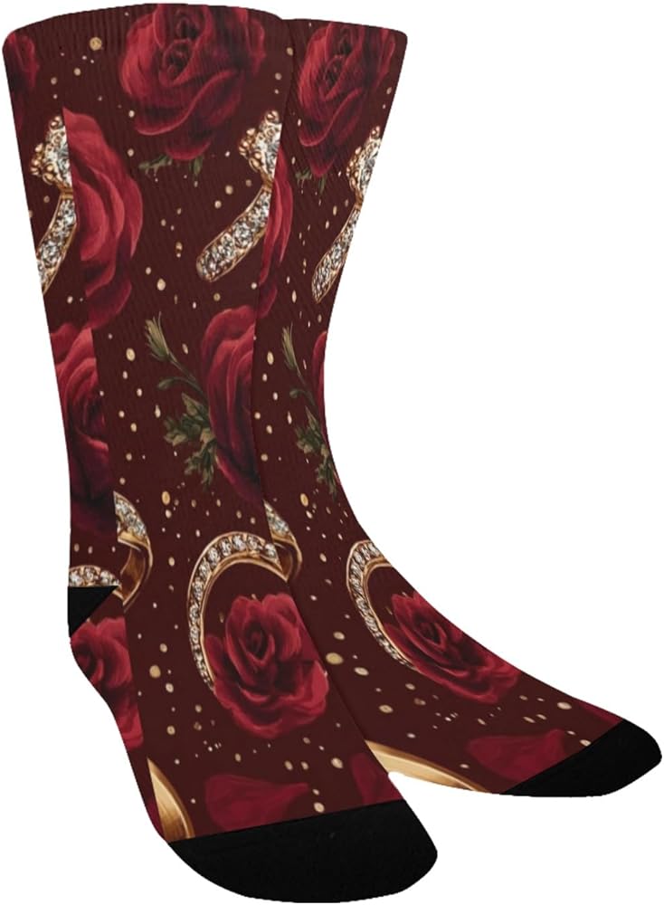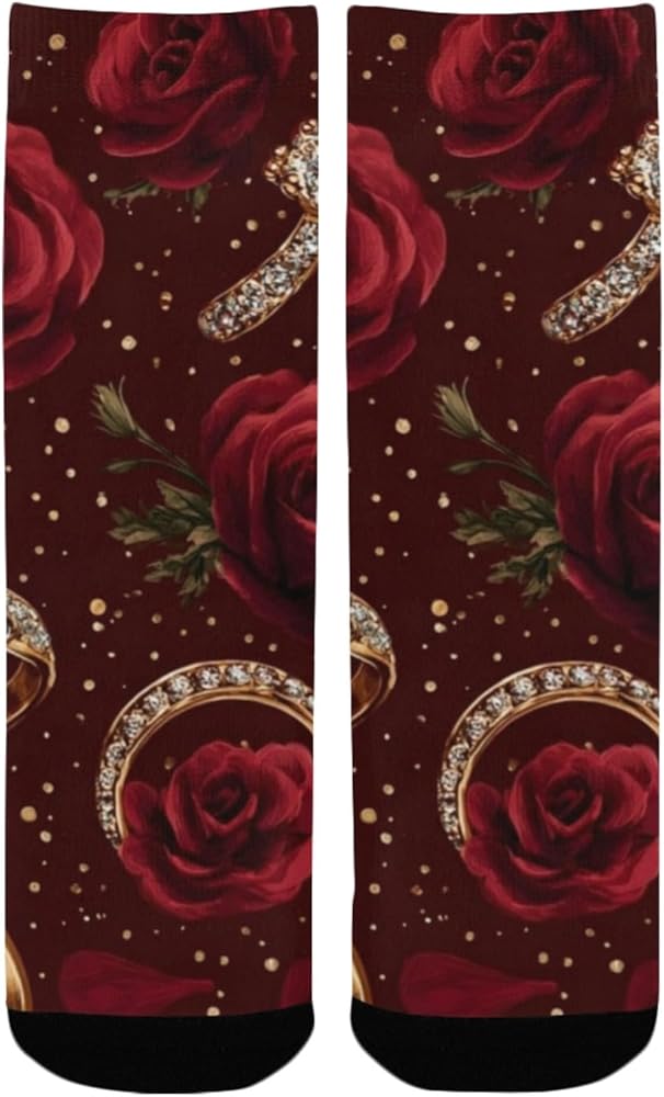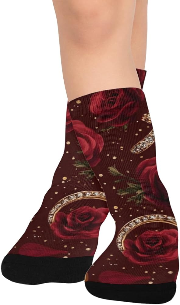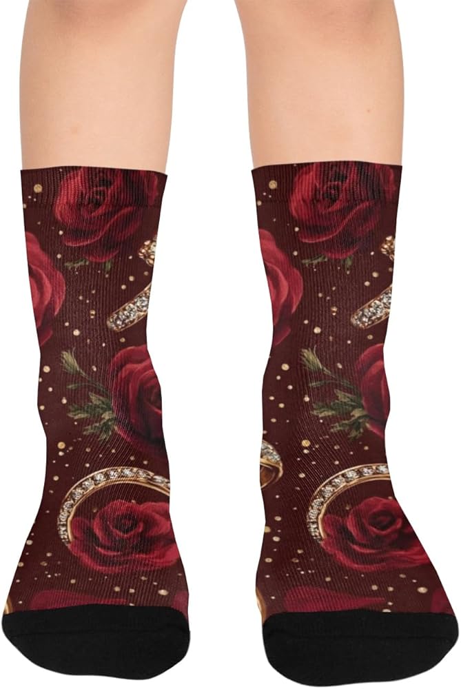 جوارب للمشي لمسافات طويلة على شكل وردة حمراء وحلقات - جوارب شتوية حرارية سميكة دافئة للأولاد والبنات الصغار للمدرسة، والارتداء اليومي والأنشطة الخارجية