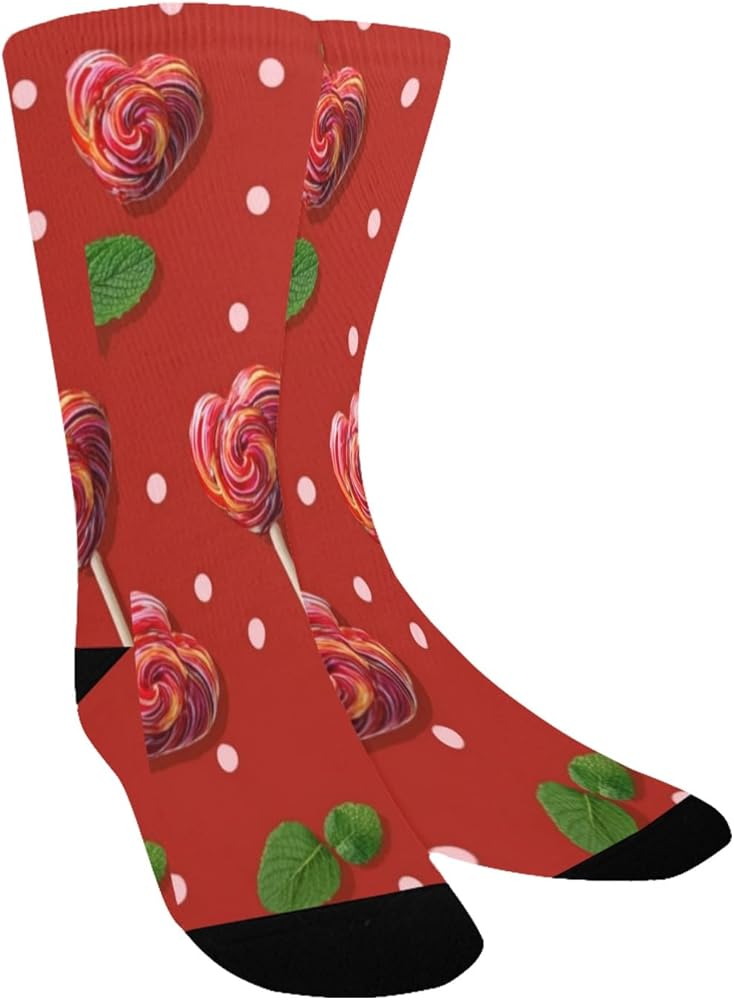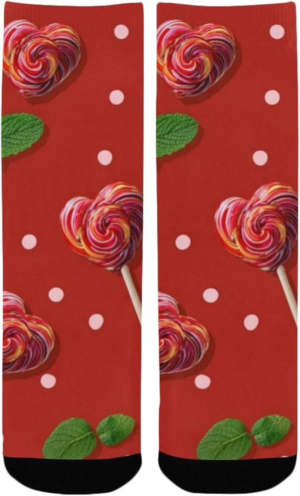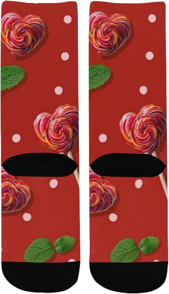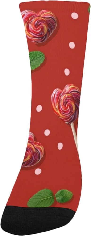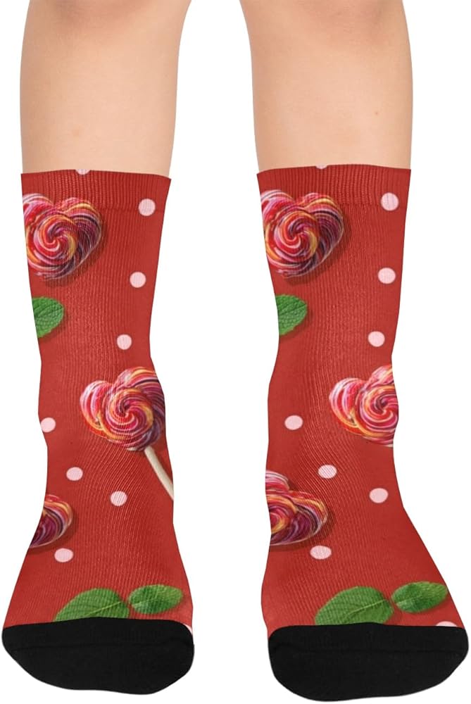 جوارب للمشي لمسافات طويلة على شكل قلب مصاصة باللون الأحمر والنعناع - جوارب شتوية حرارية سميكة دافئة للأولاد والبنات للمدرسة، والارتداء اليومي والأنشطة الخارجية