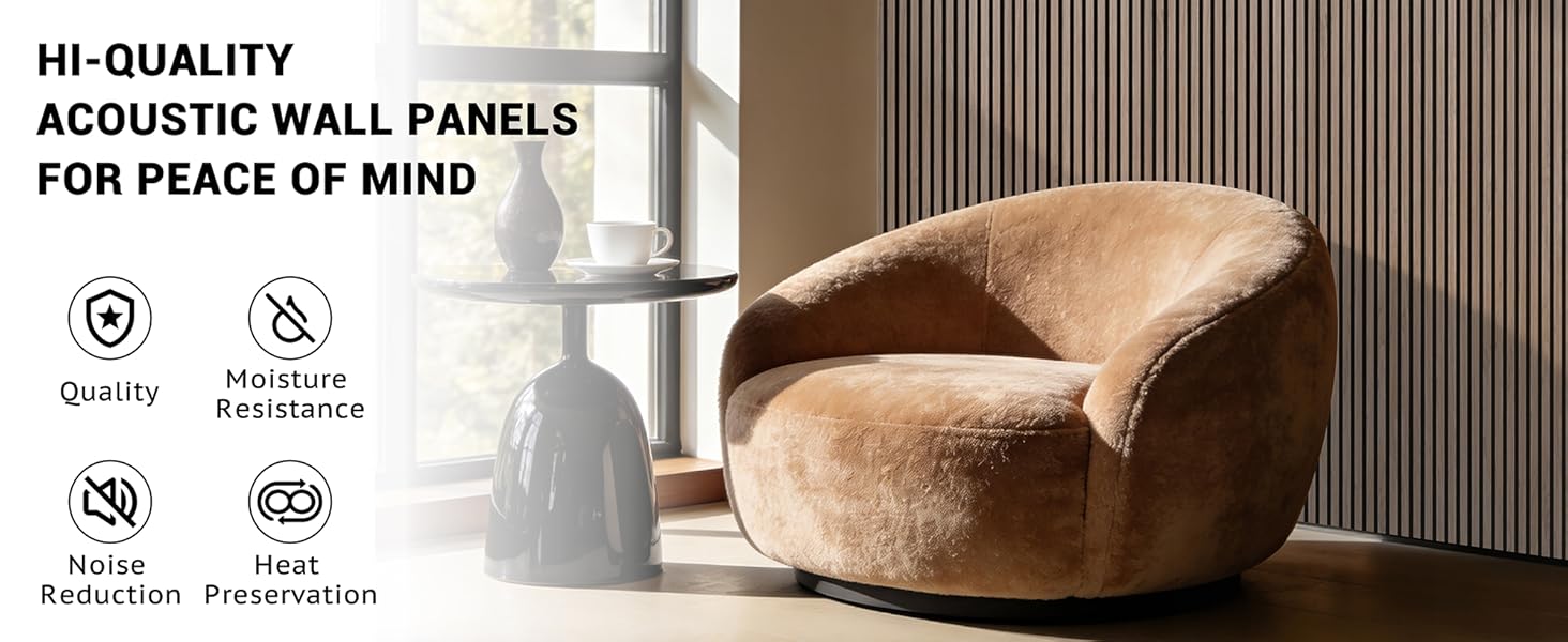 {مواد صديقة للبيئة}: تم تركيبها من ألياف MDF عالية الجودة وألياف البوليستر عالية الكثافة. تضمن هذه المادة الحد الأدنى من الانبعاثات الكيميائية وتفي بمعايير TVOC المنخفضة الصارمة. تتيح لك ألواح الجدران العازلة للصوت التمتع ببيئة معيشة وعمل آمنة وصحية!