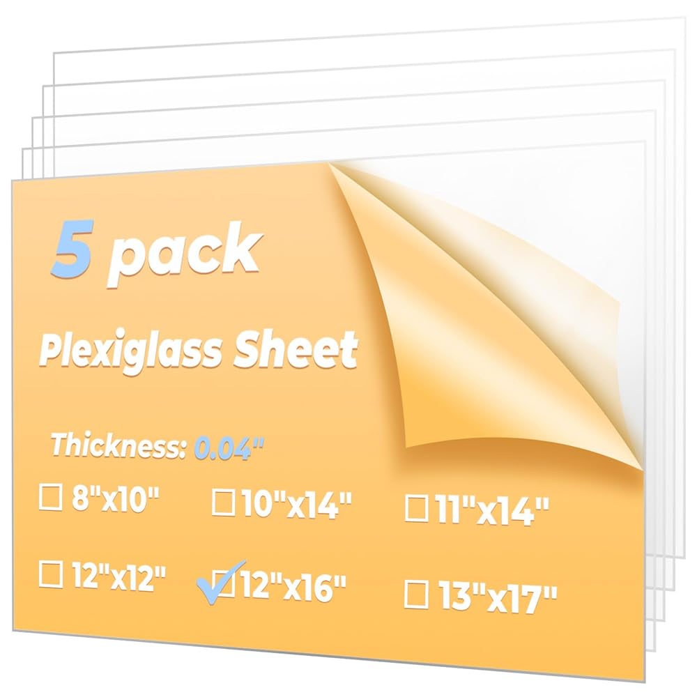 5 قطع من صفائح زجاج شبكي مقاس 12 × 16 بوصة، صفائح أكريليك شفافة بسمك 1 مم، لوحة زجاجية بليكسي مقاومة للكسر وقابلة للقطع، صفائح أكريليك شفافة متعددة للحرف اليدوية، وإطارات الأعمال اليدوية والصور