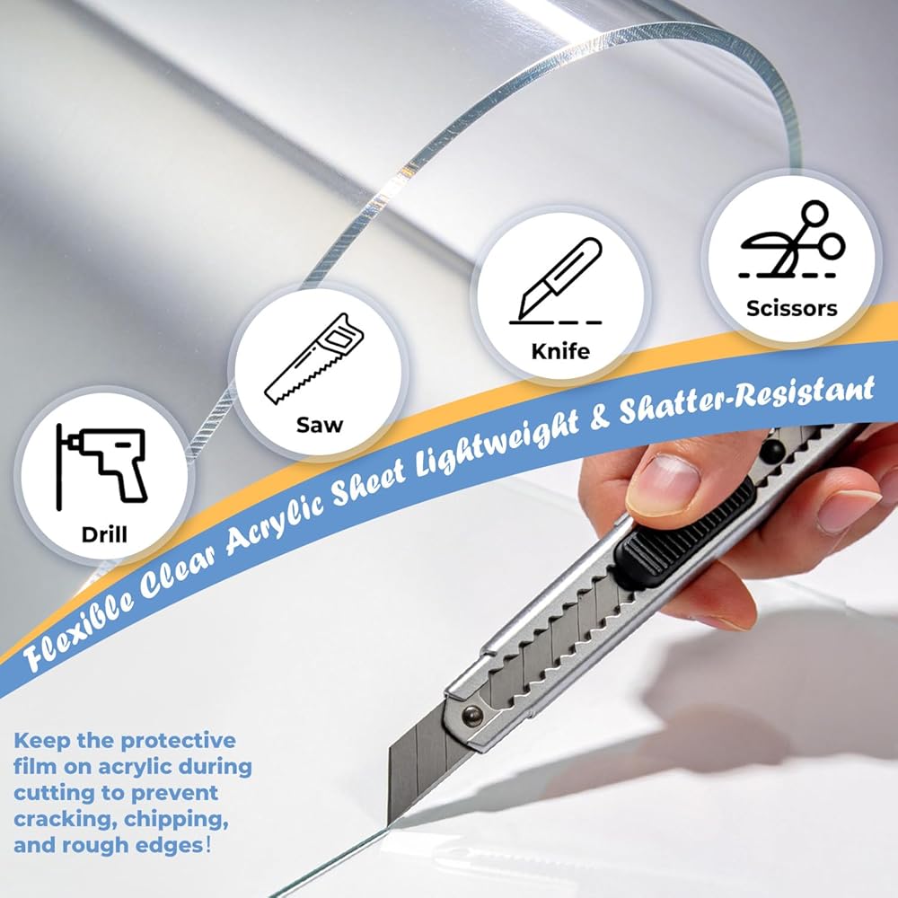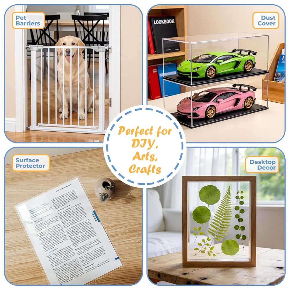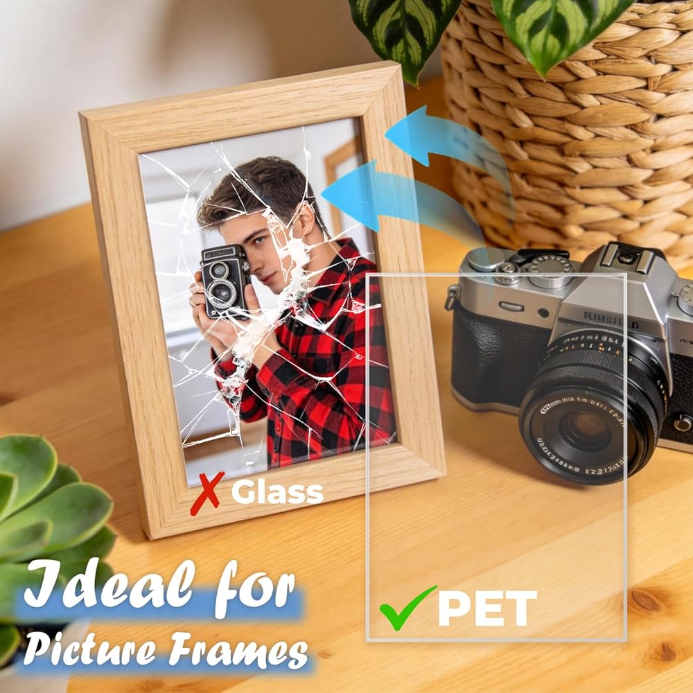 • غير قابلة للكسر وآمنة: مصنوعة من مادة البولي إيثيلين تيرفثالات المتينة، هذه الطبقة البلاستيكية المقاومة للكسر مرنة ومقاومة للصدمات، وأكثر أمانًا من الزجاج. أوراق أكريليك مثالية للمشروعات الفنية التي تصنعها بنفسك، والحرف اليدوية، وإطارات الصور للاستخدام الداخلي والخارجي