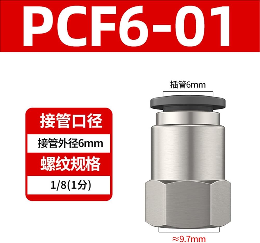 Pneumatic Tracheal Quick Connector PCF6-01/8-02/10-03 Insert Internal Thread Straight Through Black And White 1Pcs