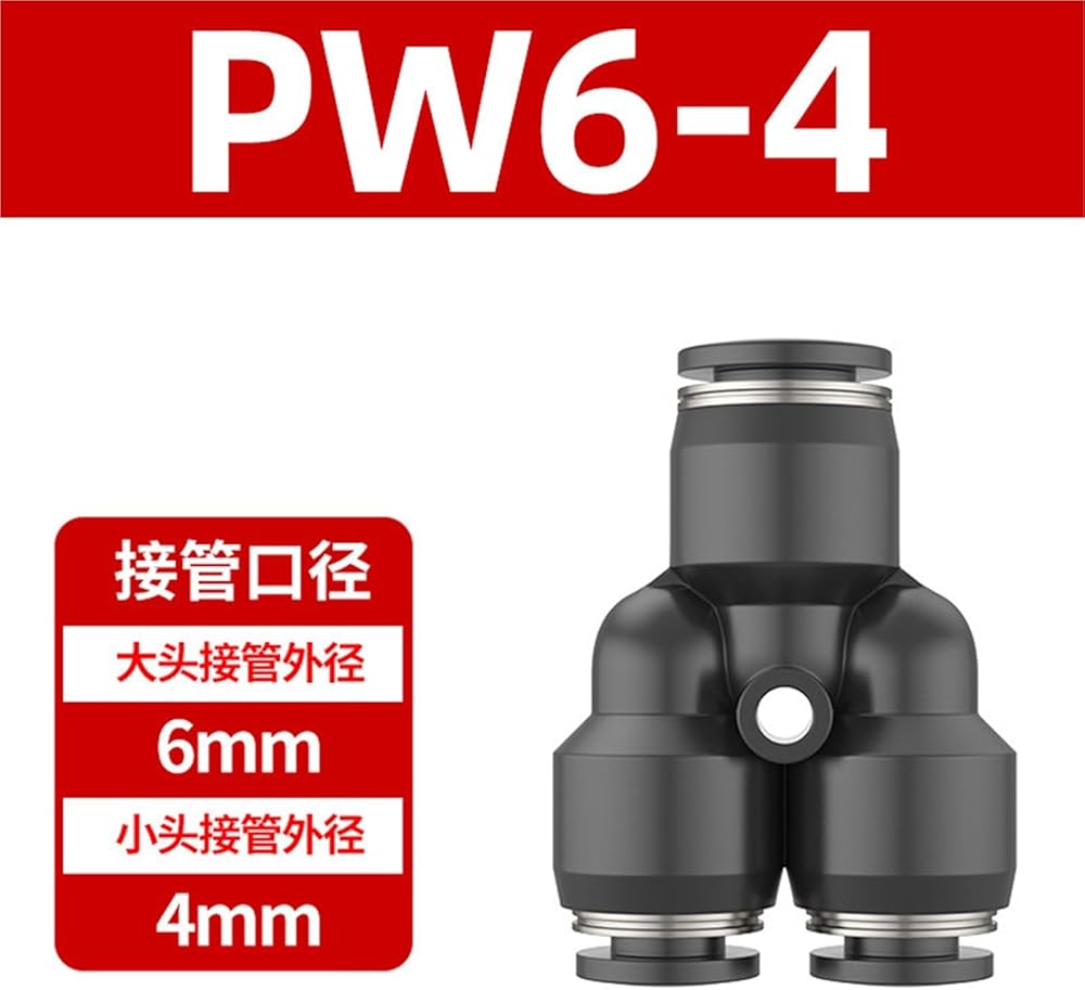موصل سريع PY نوع تي شيرت 4/6/8 مقابس قطر متغير PW تحويل بلاستيكي 8-6/10-8 توصيل أنبوب هوائي 1 قطعة(黑色PN6-4(高端))