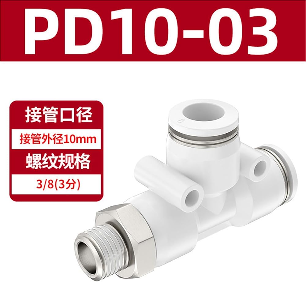 القصبة الهوائية موصل سريع على شكل حرف T الجانب المحملة PD4-01/6-01/8-02/12-04 الملحقات 1 قطعة (白色PD10-03)