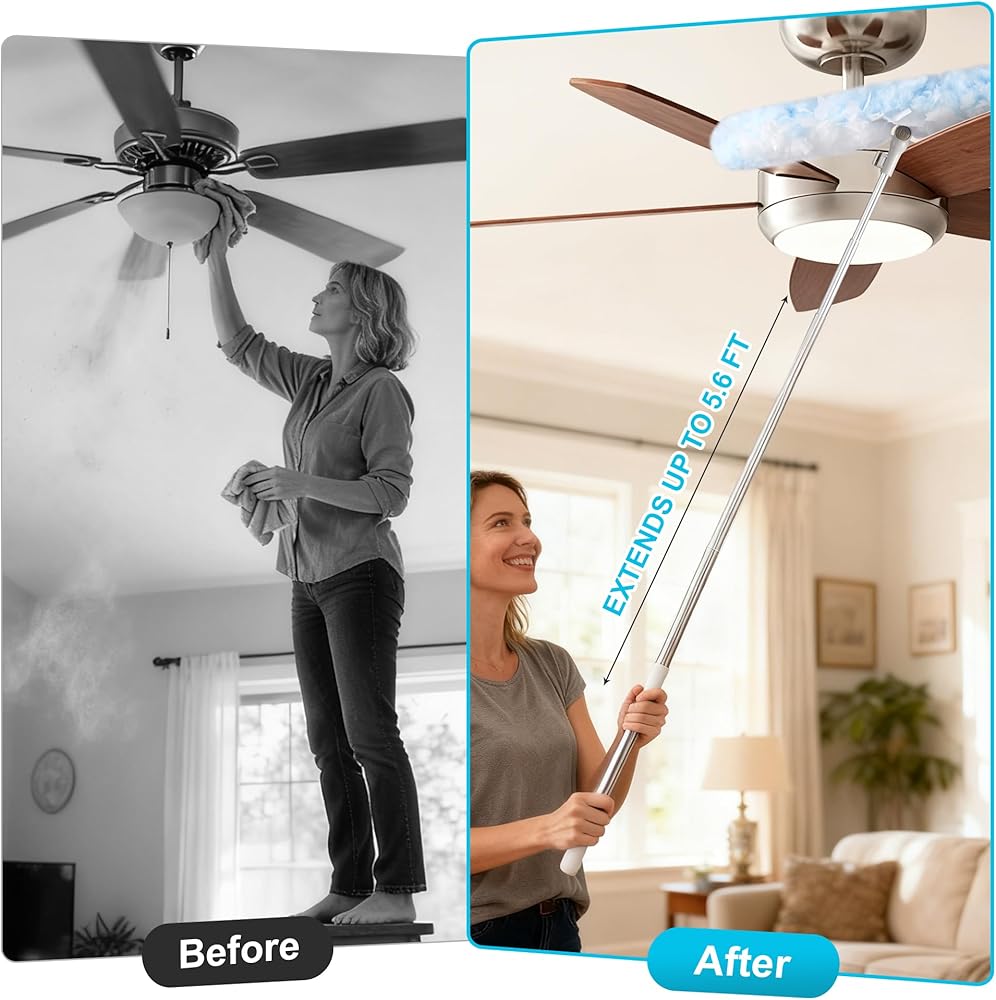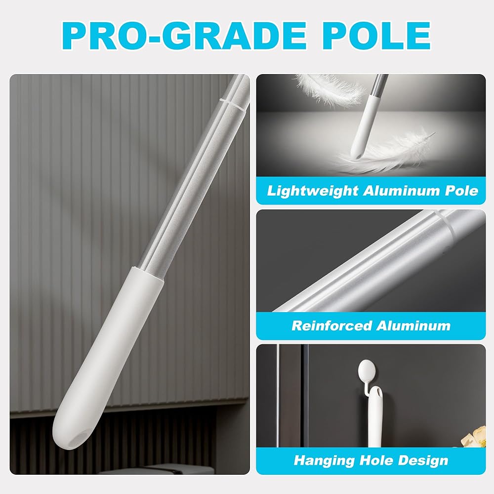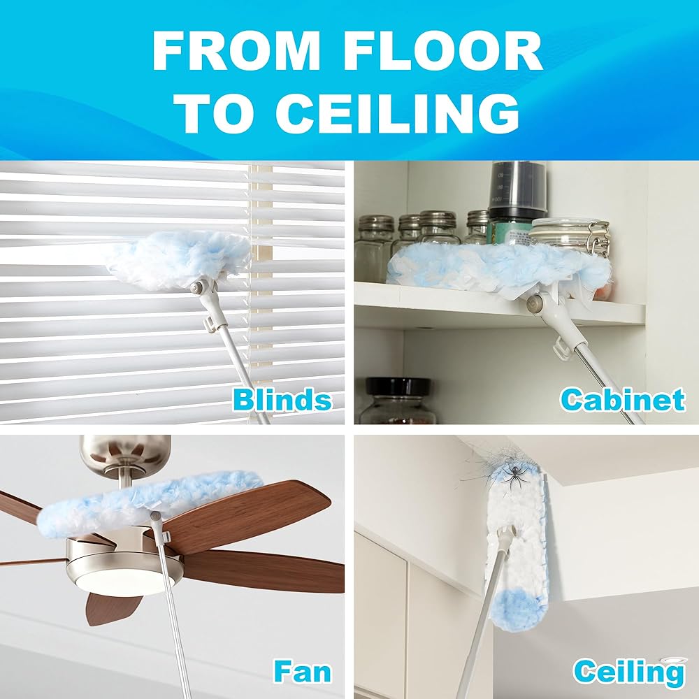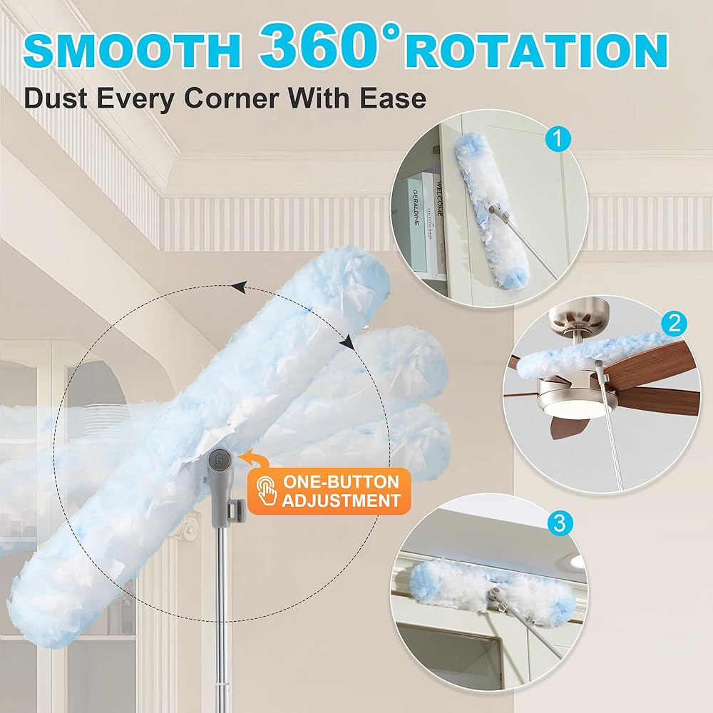 [منفضة لكل سطح] بمقبض قابل للتمدد، هذه المنفضة مثالية لتنظيف كل ركن من أركان منزلك، بما في ذلك مراوح السقف، وستائر النوافذ، وأسطح الحمام، وأدوات المطبخ. والأفضل من ذلك، أنه لطيف على الأسطح ولن يخدش أو يترك علامات