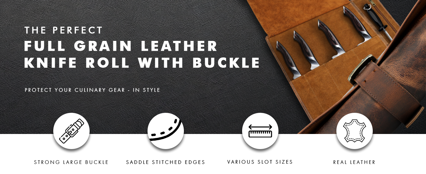 تصميم جاهز للسفر: تم تصميم لفافة حقيبة السكاكين هذه للطهاة أثناء الحركة، حيث تجمع بين التخزين الآمن وسهولة الحمل. يحافظ تصميم حقيبة السكاكين الجلدية المدمجة على تنظيم الأدوات، بينما تضمن الأشرطة المعززة النقل الآمن. تتميز كل حقيبة سفر بحامل سكين من الجلد وتصميم جلدي واقٍ بأكمام سكين للحفاظ على الشفرات آمنة أينما ذهبت.