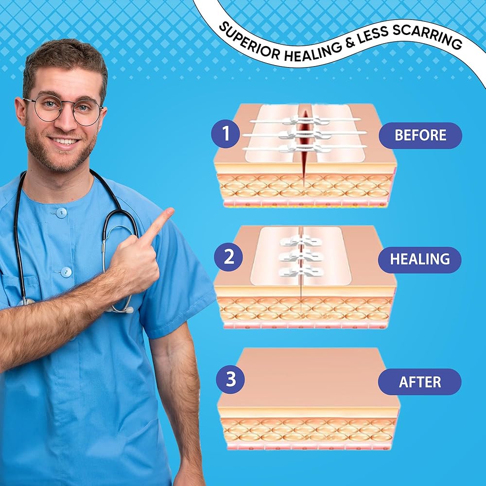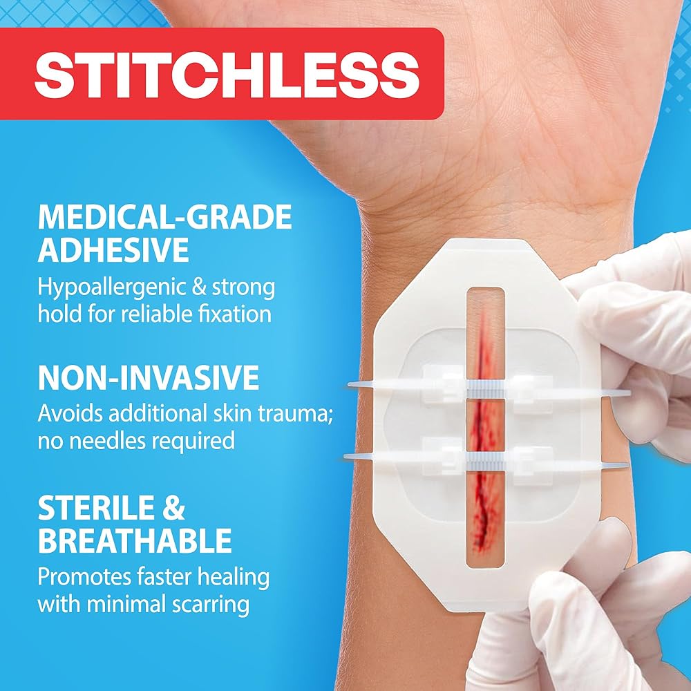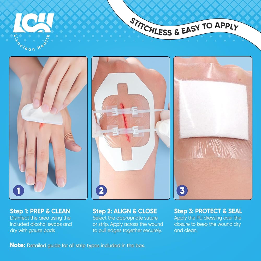 🩹 إغلاق آمن: تساعد غرز الفراشة المرنة وشرائط إغلاق الجروح على شكل سحاب على دعم تغطية الجروح بينما تضيف الضمادات الحماية من التعرض اليومي. مصممة لتثبيت يمكن الاعتماد عليه أثناء الأنشطة اليومية.