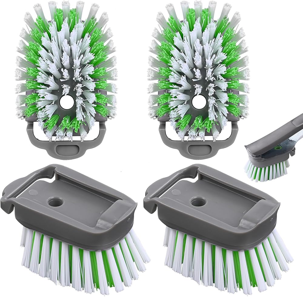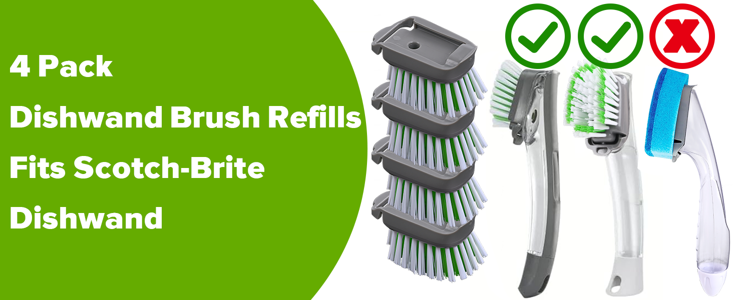 آمنة للاستخدام في غسالة الأطباق: بعد الانتهاء من التنظيف، ببساطة ضعها في غسالة الأطباق لمزيد من الراحة. تحتوي فرشاة الأطباق على 4 رؤوس لإعادة ملء رأسها، لذلك سيكون لديك دائمًا واحدة متاحة عند غسلها في غسالة الأطباق