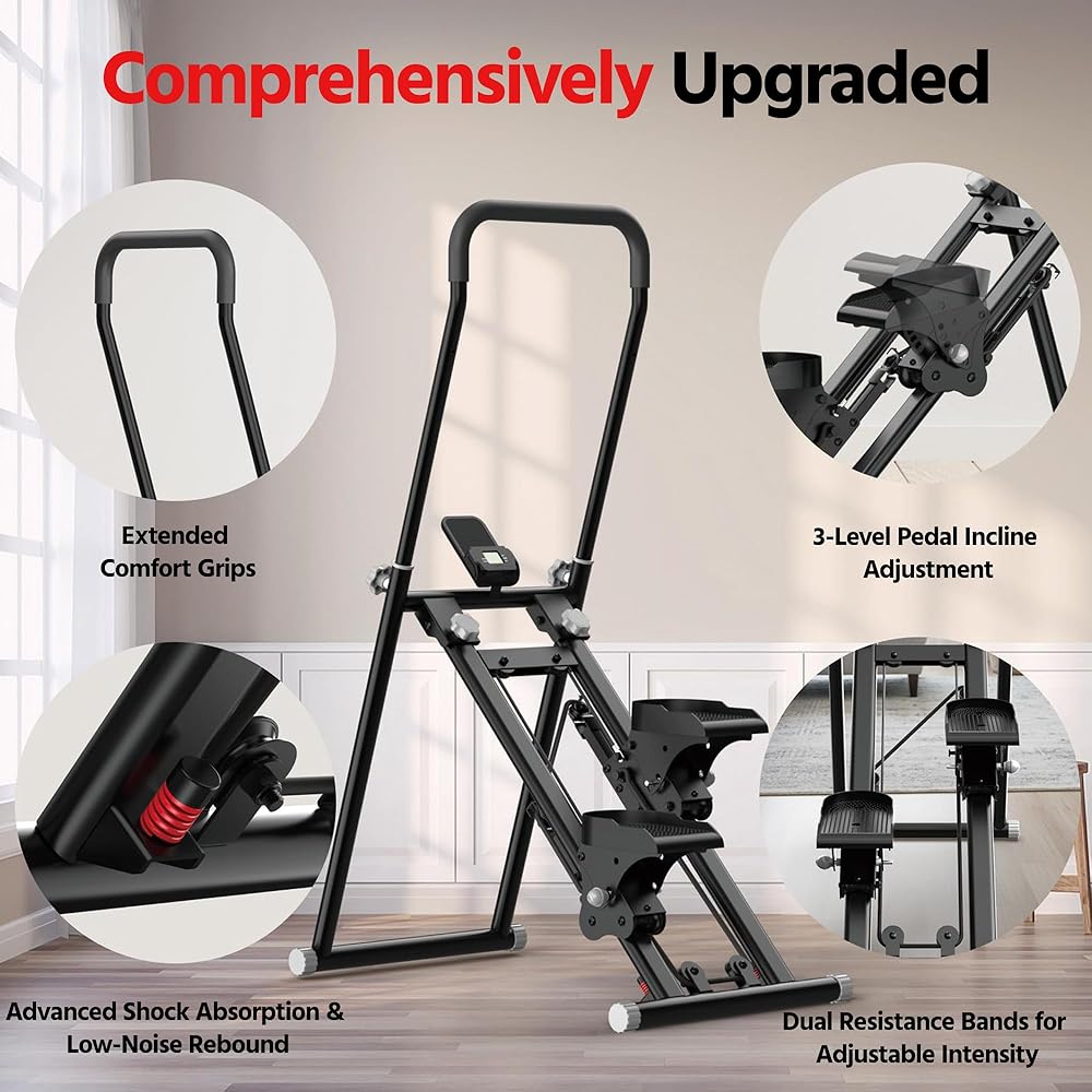 جهاز ستاير ستيبر لممارسة التمارين الرياضية المنزلية، إصدار جديد صغير الحجم قابل للطي مع زنبرك هادئ ممتص للصدمات، مقاومة قابلة للتعديل، قبضة إسفنجية طويلة، ستايرماستر لمعدات تمرين الجسم بالكامل