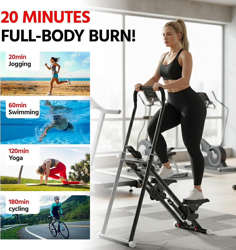 【جهاز تمارين القلب للتسلق المنزلي لكامل الجسم】اختبر جلسة كاملة للقلب والقوة في جهاز واحد فعال. يحاكي جهاز تسلق السلالم هذا حركة التسلق الطبيعية لإشراك ساقيك وأردافك وقلبك وذراعيك، مما يحرق الحد الأقصى من السعرات الحرارية في أقل وقت ممكن. إنها الأداة المثالية لإعداد معدات رياضية منزلية قوية، مما يوفر تمرينًا منخفض التأثير وعالي الكثافة ينافس محترف Stairmaster.