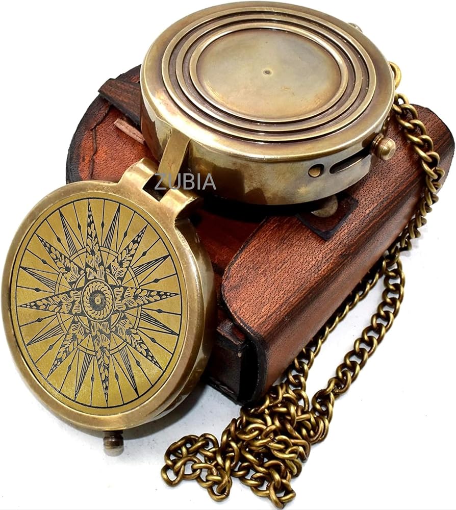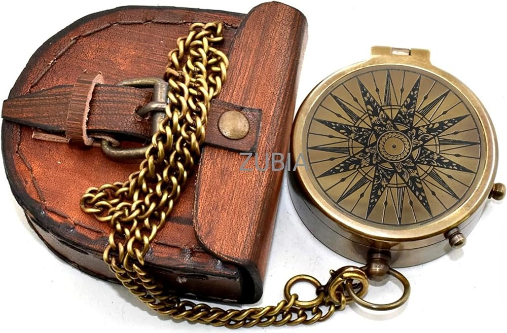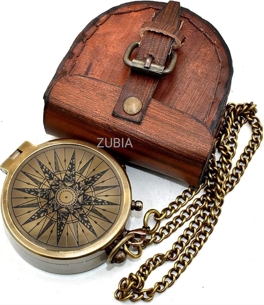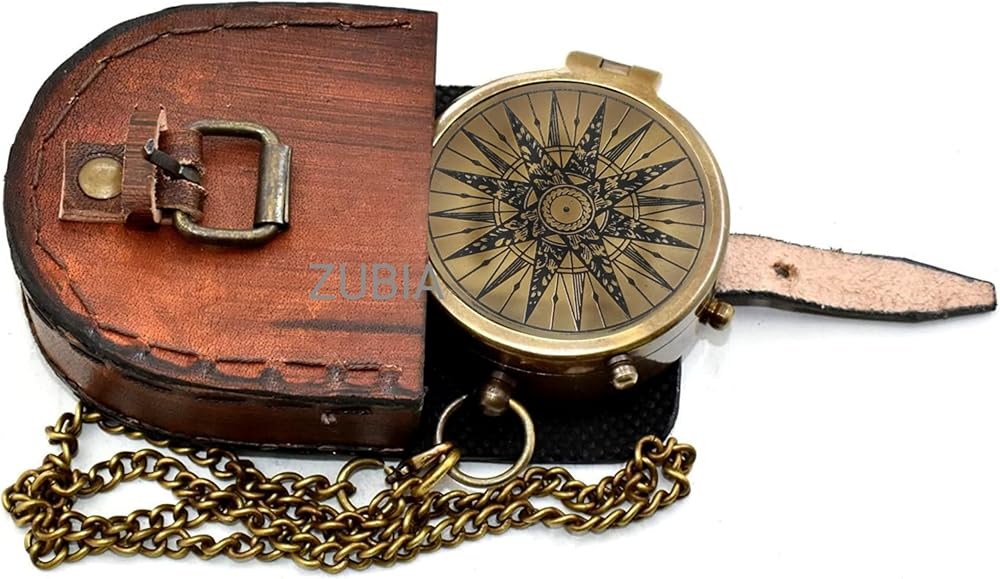Navigate life's adventures with this Vintage Brass Compass with Leather Case – a handmade pocket compass designed for explorers, campers, scouts, and gift seekers. Made from solid antique brass, this working compass features a classic nautical design, perfect for camping, hiking, scouting, survival, and maritime adventures. Housed in a premium leather pouch, it's compact, portable, and ready for any journey. Ideal as a gift for men, Boy Scouts, military enthusiasts, or groomsmen, this brass pocket compass combines function and style. Whether used as a collectible, scouting gear, or outdoor navigation tool, it brings timeless charm and reliability. Perfect for fans of vintage decor, nautical gifts, or travel gear. Use it as a survival compass, adventure compass, or antique navigation tool — it's a thoughtful and practical gift that stands the test of time. Step into the spirit of exploration with this vintage-style brass compass, beautifully crafted for travelers, adventurers, and gift-givers. With a detailed nautical star compass design, this fully functional tool combines classic craftsmanship and modern inspiration. Perfect for camping, hiking, or as a meaningful keepsake for birthdays, graduations, Father's Day, or anniversaries.