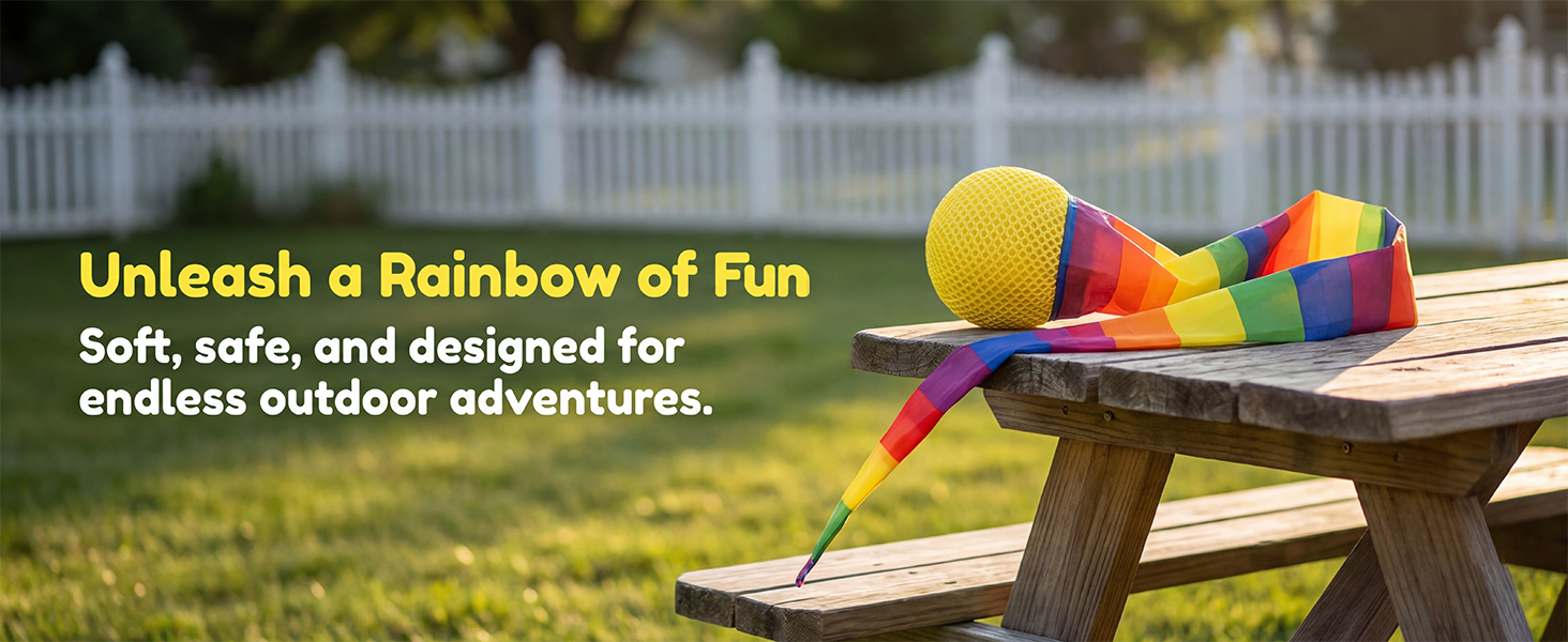 • ألوان قوس قزح التعليمية: تأتي الأجزاء العلوية من ألعاب الملعب الخارجية بستة ألوان مختلفة زاهية، تتوافق مع ذيول قوس قزح المتدفقة الرائعة للحصول على تأثيرات بصرية فائقة السطوع ولافتة للنظر. هذه اللعبة الرياضية التعليمية تجذب انتباه الأطفال بسهولة وتحفز اهتمامهم الرياضي النشط بشكل فعال. عندما يتم رمي كرات النيزك الملونة، ترفرف ذيول قوس قزح بشكل جميل في الهواء، مما يضيف المزيد من المتعة البصرية إلى الألعاب التفاعلية.