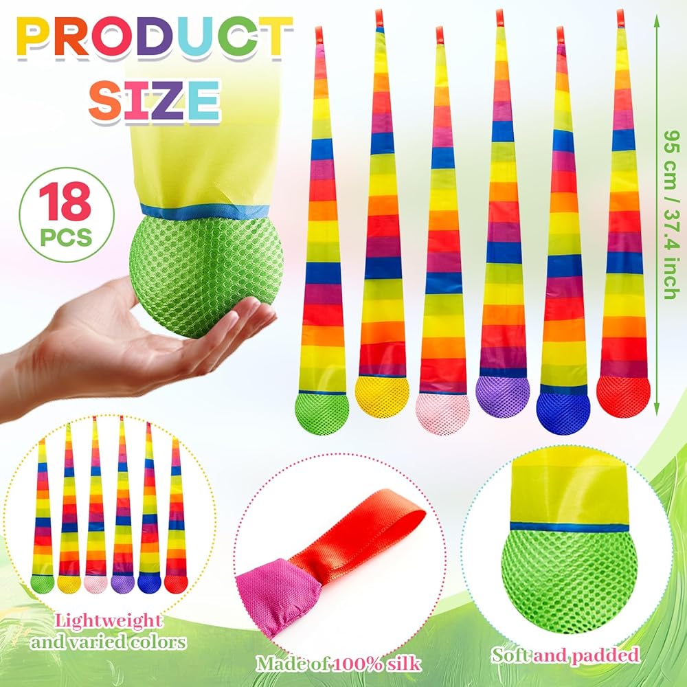 18 قطعة من كرات الرمي والالتقاط مقاس 37.4 بوصة مع ذيل قوس قزح، كرات مذنب رياضية ناعمة، ألعاب ملونة كبيرة الحجم للأطفال والكبار، معدات بدنية للأماكن المغلقة والمفتوحة، والفصول المدرسية، وألعاب الشاطئ الممتعة