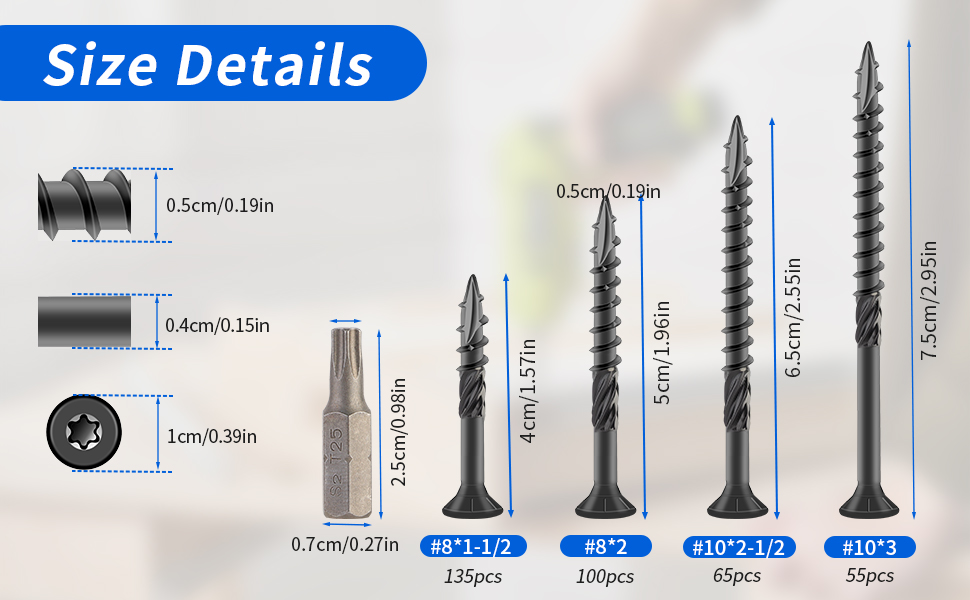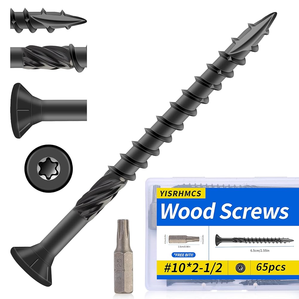 الجودة والحجم: قطر برغي السطح هذا #10، الطول 2-1/2 بوصة، الكمية 65 قطعة، وقطعة مثقاب محرك T25 نجمة/توركس متضمنة