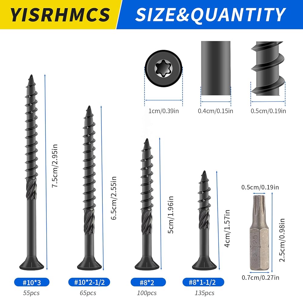 تركيب سهل: مسامير خشبية Torx/star تجعل التثبيت أسهل، وغير قابلة للانزلاق، وسريع، وليس من السهل كسره، وقوة عالية، وليس من السهل تشويهه، وليس غريب الأطوار