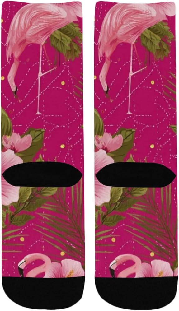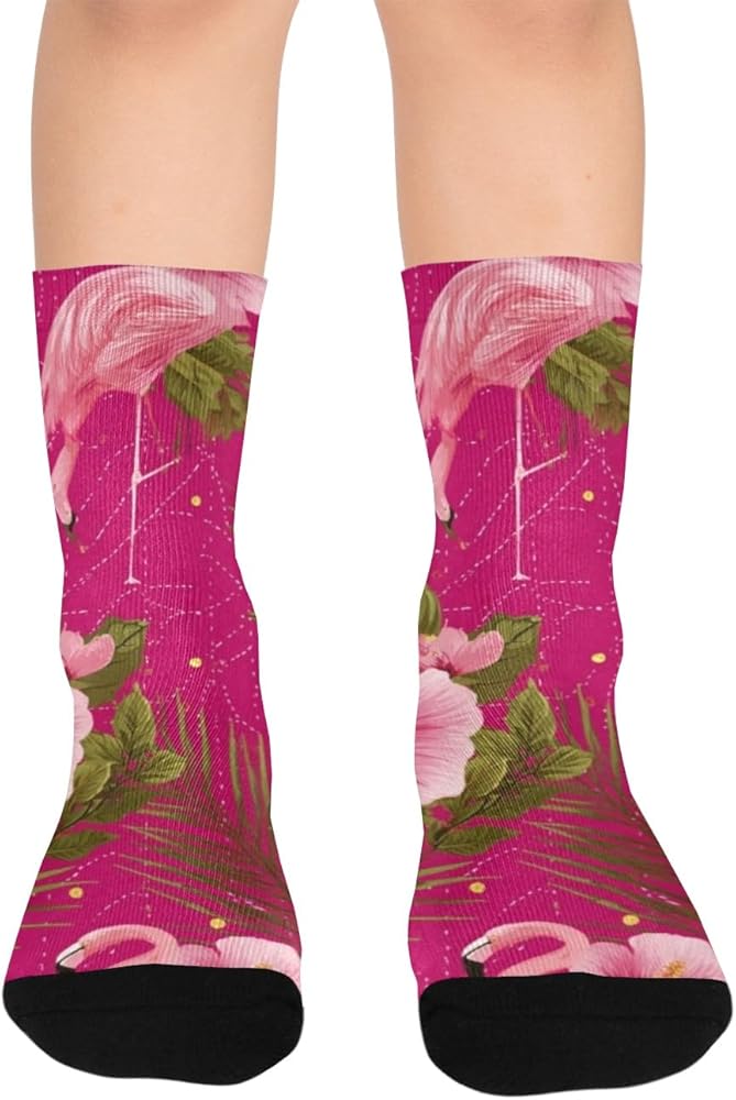 جوارب Flamingo Hibiscus Bloom Pink للمشي لمسافات طويلة - جوارب شتوية سميكة دافئة للأولاد والبنات للمدرسة، والارتداء اليومي والأنشطة الخارجية