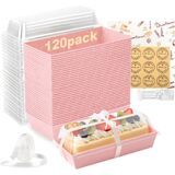 60 قطعة من صناديق الفحم من WERTIOO بأغطية شفافة - صناديق صغيرة من الورق للاستعمال مرة واحدة مقاس 7 بوصات، صناديق حلويات للمخبوزات مع غطاء للساندويتش والكعك والسوشي وشرائح الكيك والفراولة (وردي)