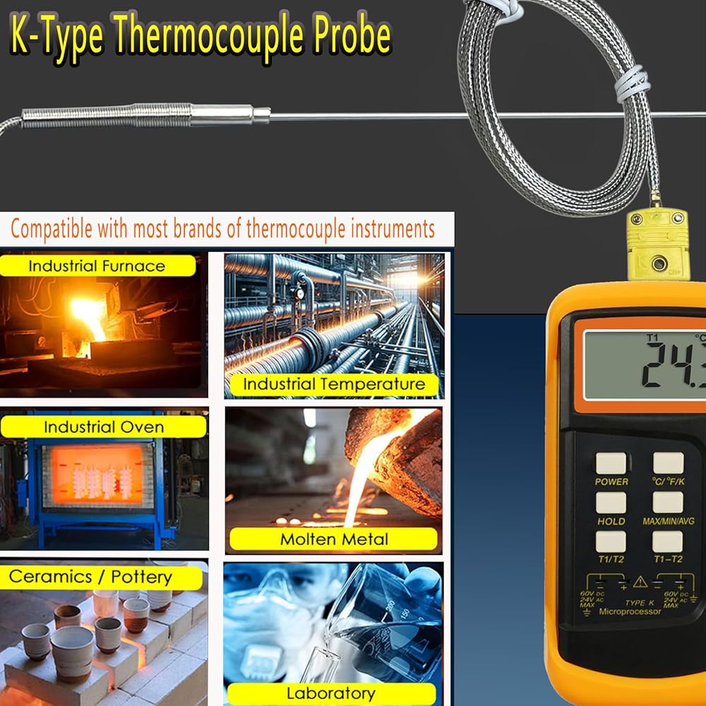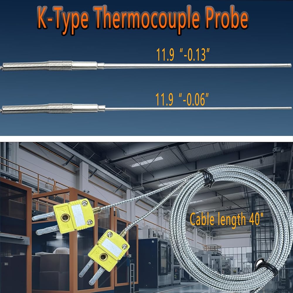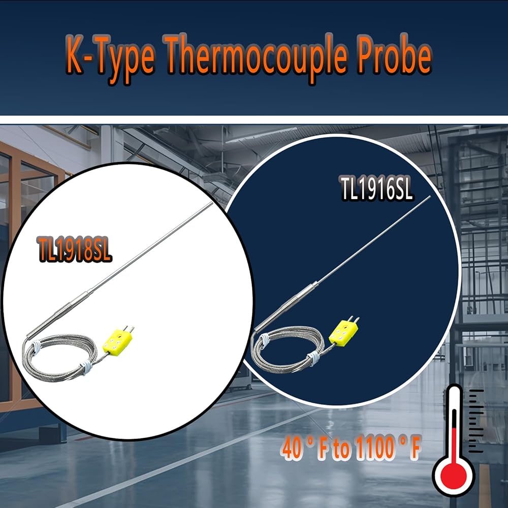 يعمل المسبار الحراري من النوع K ضمن نطاق درجة حرارة قصوى يتراوح من -40 درجة فهرنهايت إلى 1100 درجة فهرنهايت مع الحفاظ على دقة قياس عالية تبلغ ±0.05%. مصمم خصيصًا للبيئات القاسية مثل الأفران الصناعية، واختبار عادم المحرك، ومعدات المعالجة الحرارية ذات درجة الحرارة العالية
