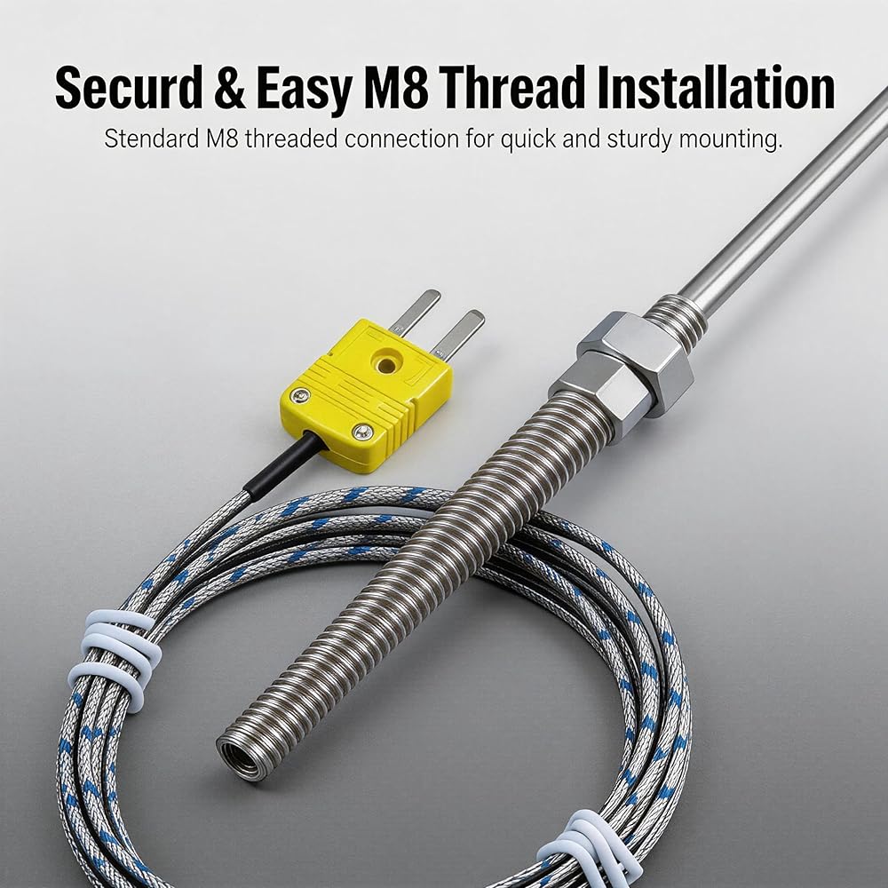 مسبار حراري من النوع K، خيط M8، نطاق درجة الحرارة -50 درجة فهرنهايت إلى 1472 درجة فهرنهايت، مناسب للأفران والأفران والطابعات ثلاثية الأبعاد ومعدات التدفئة.