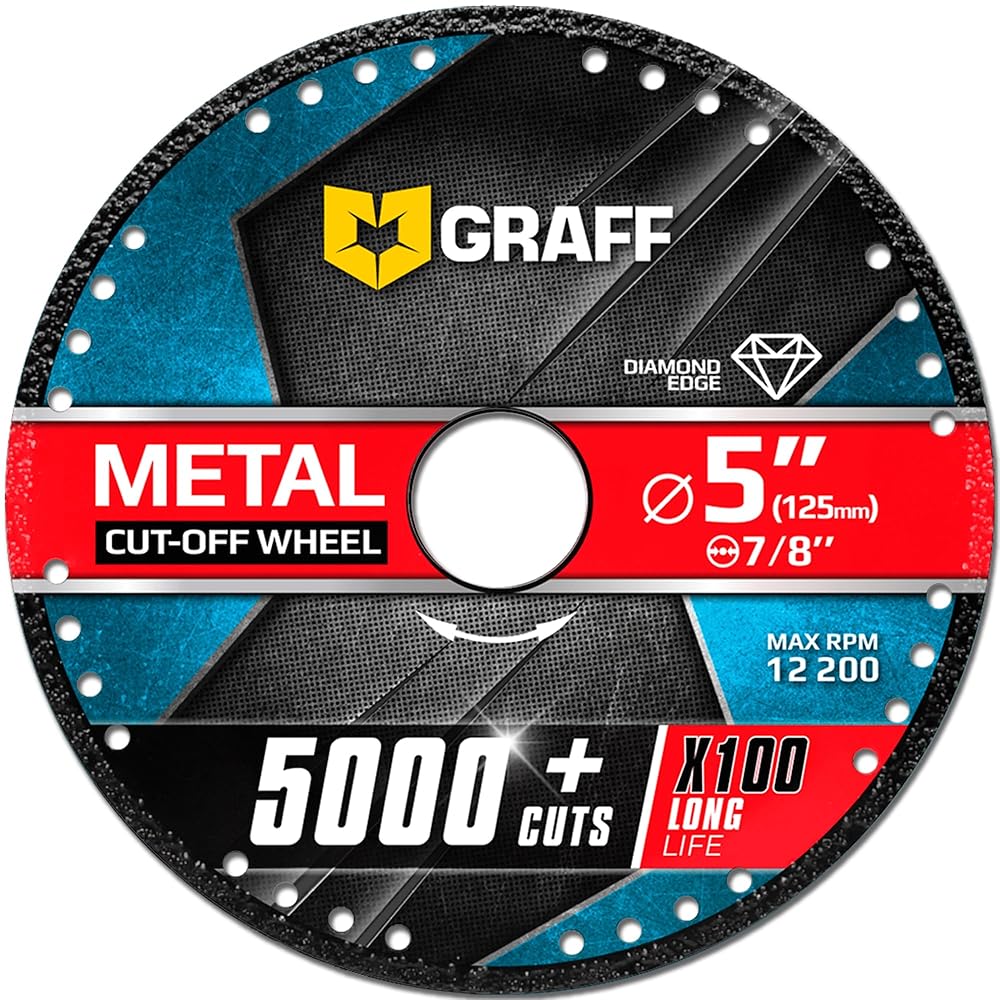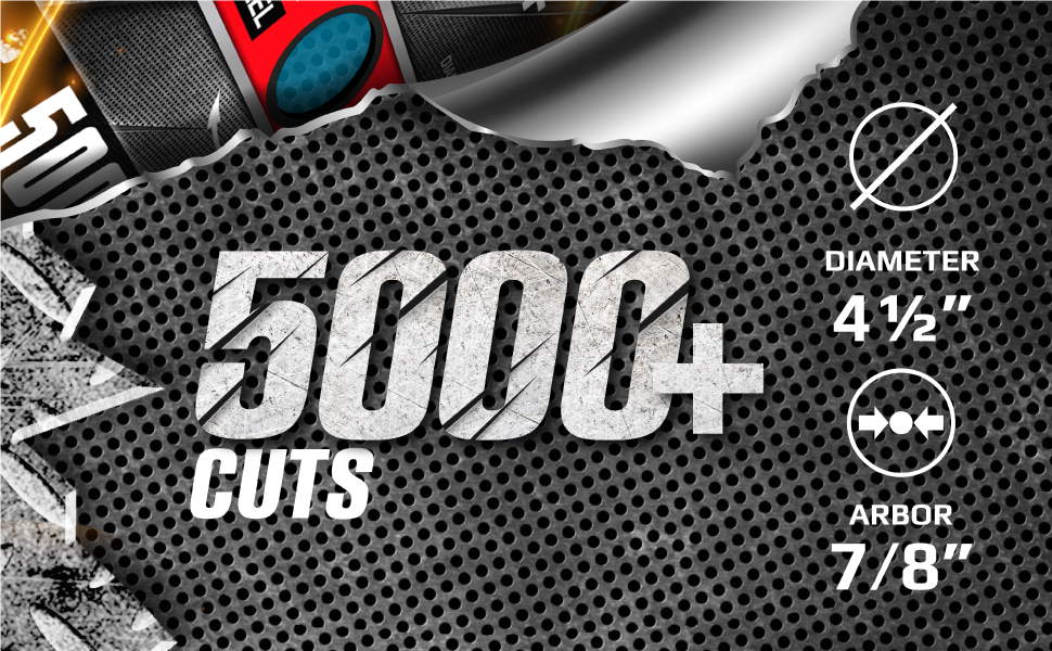 المواصفات - القطر: 4 1/2 بوصة، الشجرة: 7/8 بوصة، السرعة القصوى: 13200 دورة في الدقيقة، سُمك القطع: 1/16 بوصة.
