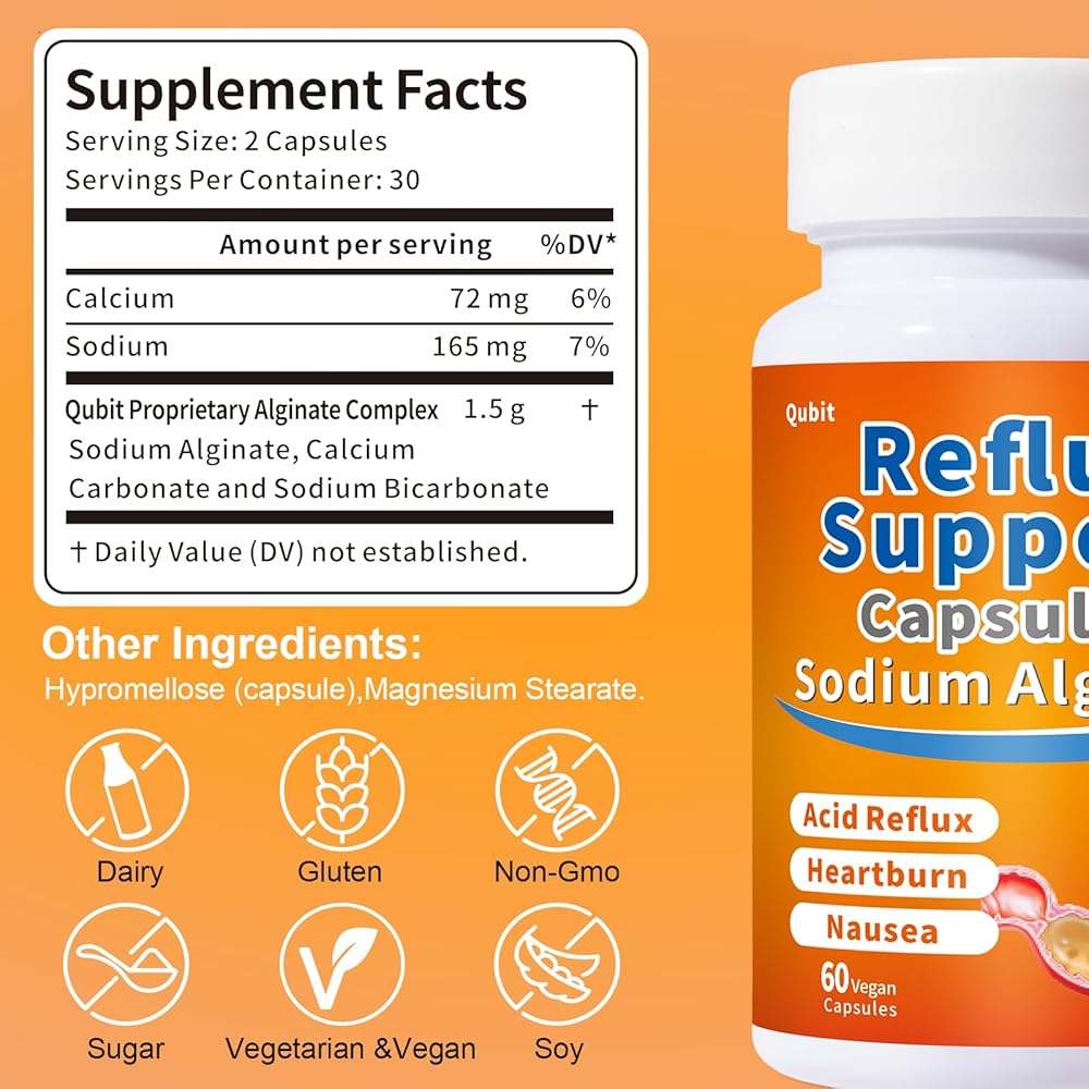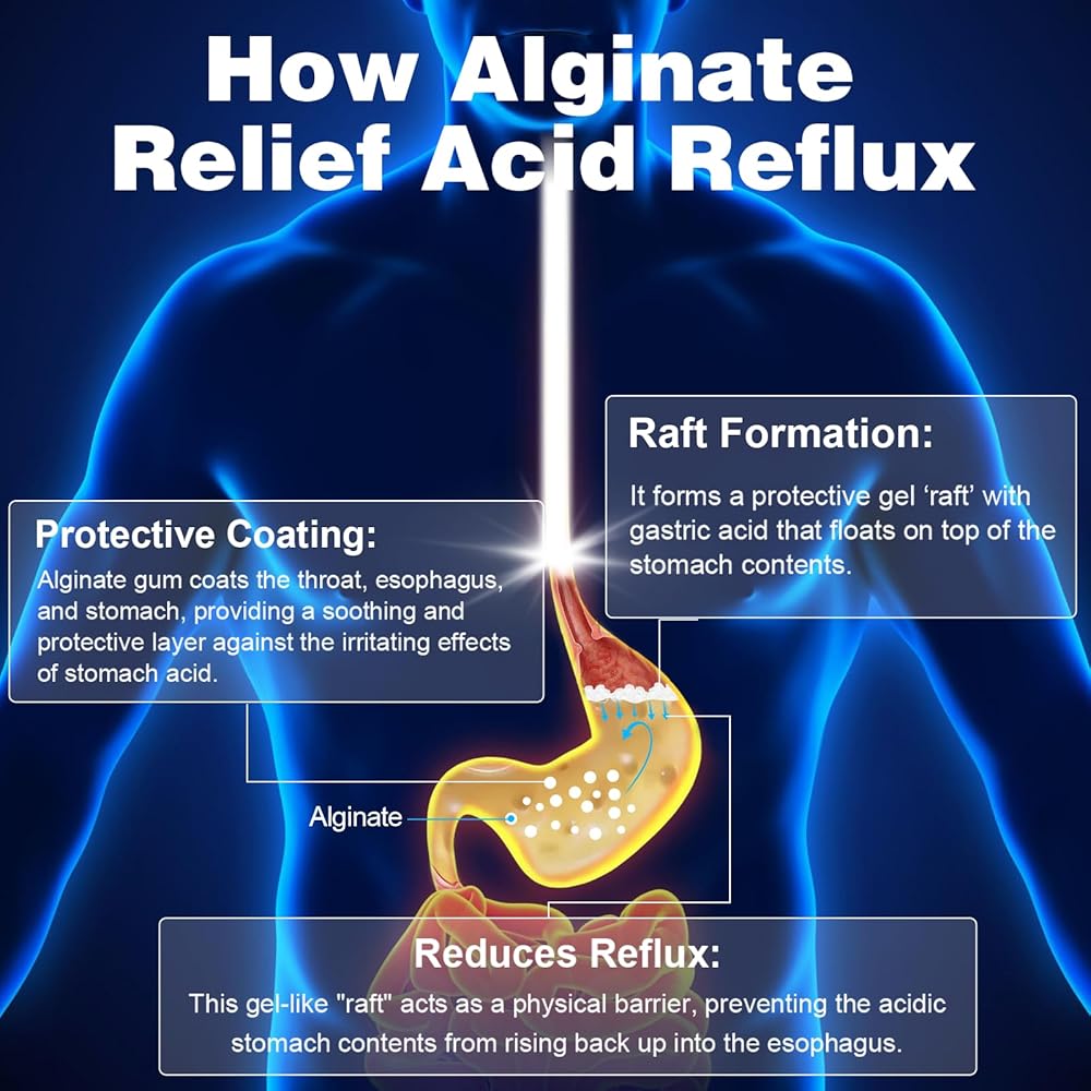 • Gentle, Natural & Safe: Made with sodium alginate from seaweed and free from gluten, soy, nuts, artificial colors, and fillers. These sodium alginate for acid reflux are designed for long-term use with no known side effects. They're a gentle option that's compatible with most medications