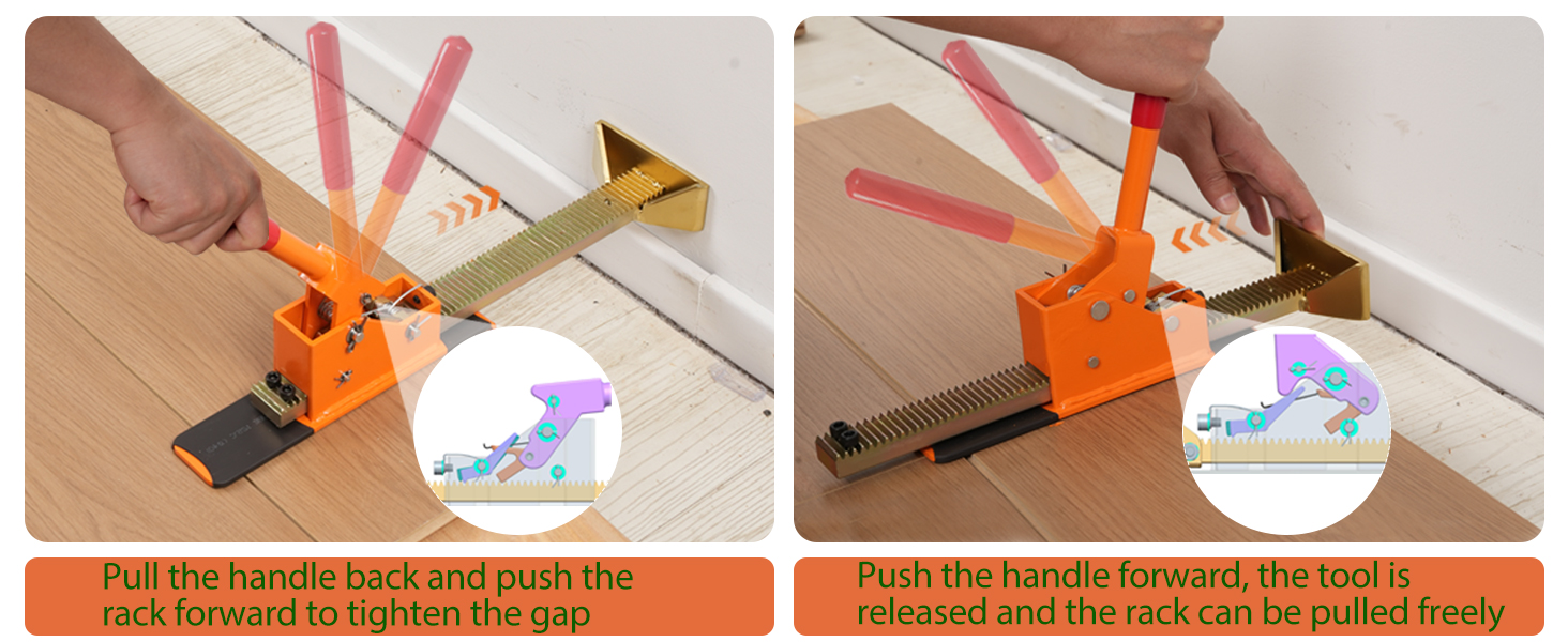 • تركيب دقيق وبدون جهد: يتم استخدام مقبس الأرضية السقاطة لفرد ألواح الأرضية ويستخدم لوضع ألواح الأرضية بسهولة. تضمن أداة رفع الأرضيات المصنوعة من الخشب الصلب المُصممة هندسيًا ملاءمة محكمة واحترافية لأرضيات اللسان والأخدود.