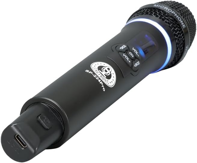 نظام ميكروفون لاسلكي رقمي قابل للشحن من SINGTRONIC SP-224Pro | بطارية ليثيوم مدمجة، مضادة للعواء، لا حاجة لمنفذ طاقة، ميكروفون كاريوكي بدون استخدام اليدين للاستخدام في الهواء الطلق