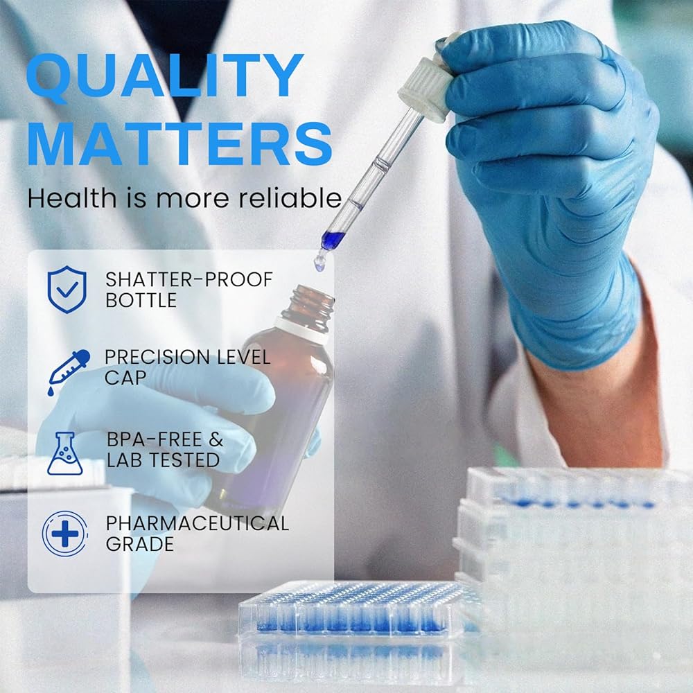 • خيارات الاستخدام المرنة: تحكم في مكملات الميثيلين الزرقاء الخاصة بك باستخدام قطارتنا سهلة الاستخدام. من أجل سلامتك، نستخدم زجاجًا غير مميز لمنع تلوث الحبر، مما يضمن أن كل قطرة نقية بقدر ما هي قوية.