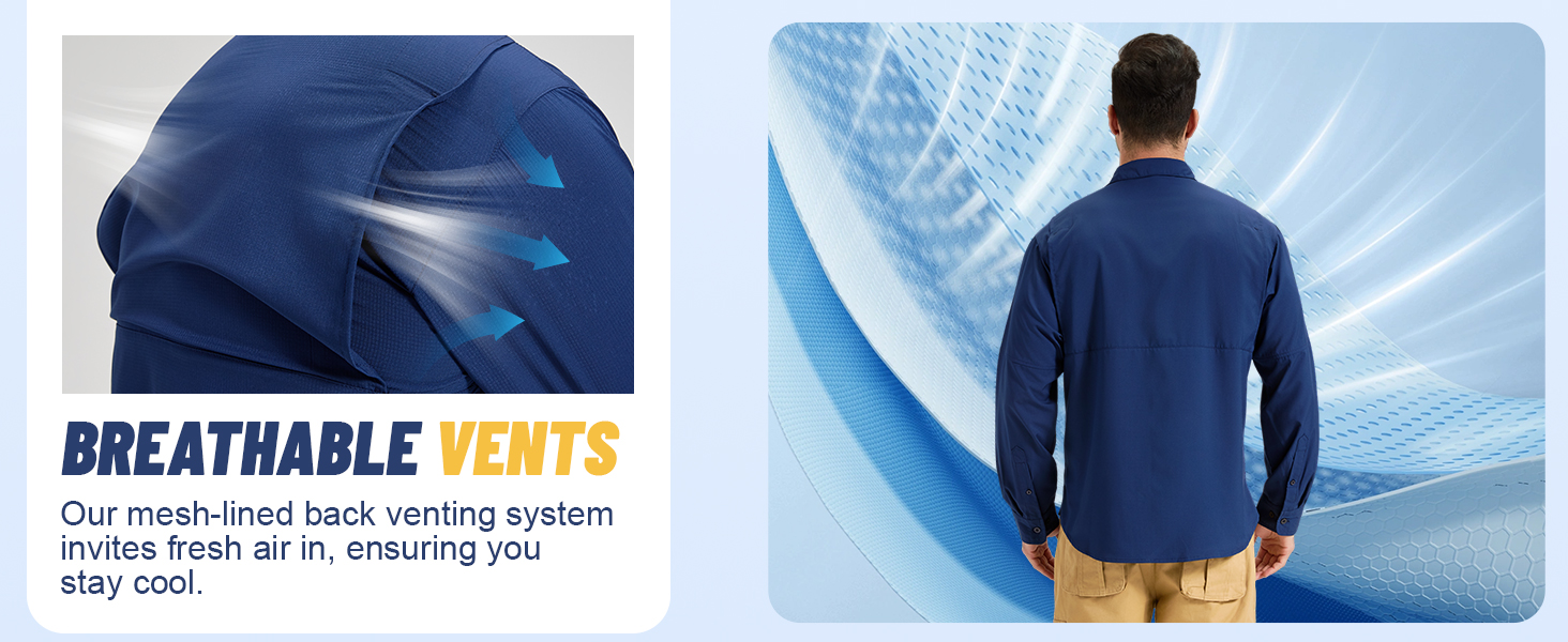 حماية من أشعة الشمس بعامل حماية من أشعة الشمس 50+: تحجب قمصان المشي لمسافات طويلة 98% من الأشعة فوق البنفسجية فئة A وB الضارة. سواء كنت تصطاد في المياه المفتوحة أو تتنزه على ارتفاعات عالية، فإنها توفر أقصى قدر من الحماية لمنع حروق الشمس وتلف الجلد