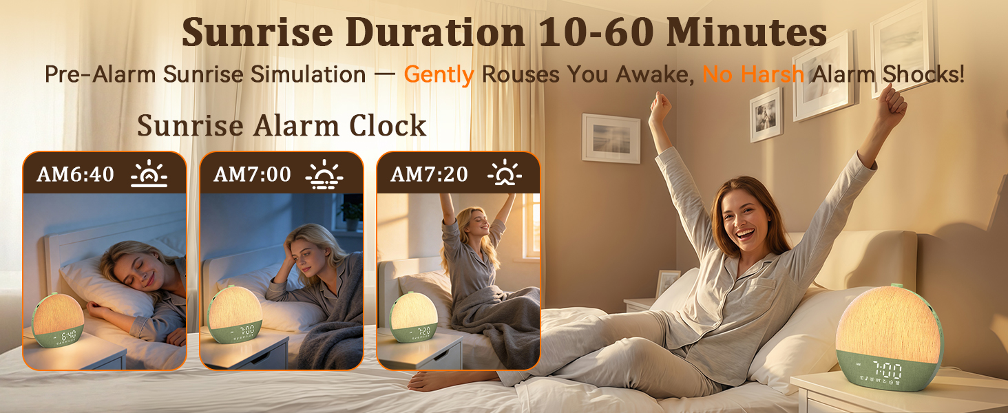 [إيقاظ ذكي تدريجي لشروق الشمس] بالنسبة للعاملين في المكاتب الذين ينامون بشدة والطلاب الحساسين للضوء الذين يعانون في صباح الشتاء الداكن أو مساكن الطلبة الصاخبة، تسبب المنبهات القاسية التعرق وانخفاض الطاقة طوال اليوم. تسمح وظيفة التنبيه المزدوج لدينا بجداول زمنية مستقلة، في حين أن محاكاة شروق الشمس التدريجي لمدة 10-60 دقيقة و10 أصوات إيقاظ طبيعية تسمح لكل جسم بالاستيقاظ بلطف مع محاكاة ضوء الشمس، وبدء اليوم منتعشًا وخاليًا من التوتر.