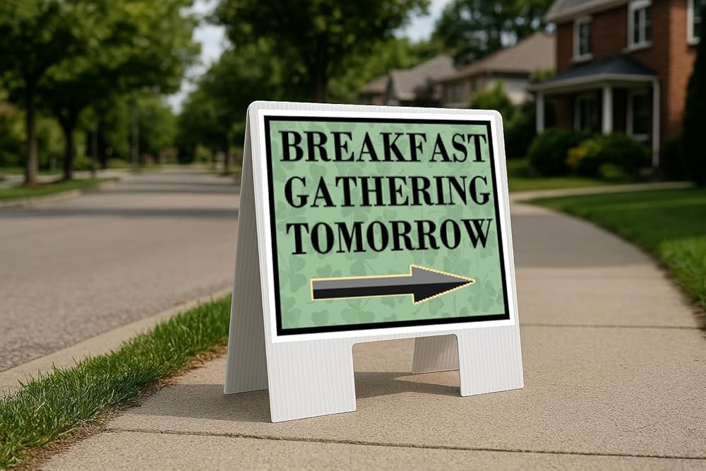 • Freestanding A-Frame Design – Sets up quickly without stakes or extra hardware; stable on sidewalks, driveways, or entryways.