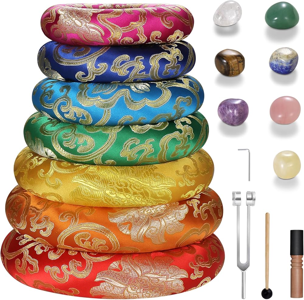 هدايا روحية فريدة من نوعها - وسادة أوعية الغناء / كريستال طبيعي وأحجار علاجية / مجموعة شوك الضبط: 7 أنواع من تصميم الأنماط الملونة للوسادة و7 أنواع من أحجار الكريستال الطبيعية الملونة، مجموعة وسائد وعاء الغناء هذه هي الهدية المثالية للصديق القلق، أو محبي التأمل، أو أي شخص يبحث عن الهدوء بدون حبوب. مصممة لمعالجي الصوت ومعلمي اليوغا والمعالجين والطلاب والباحثين عن التأمل. ابدأ عملية الصنفرة على الفور - إنها هدية مساعدة قوية للتأمل المنزلي.
