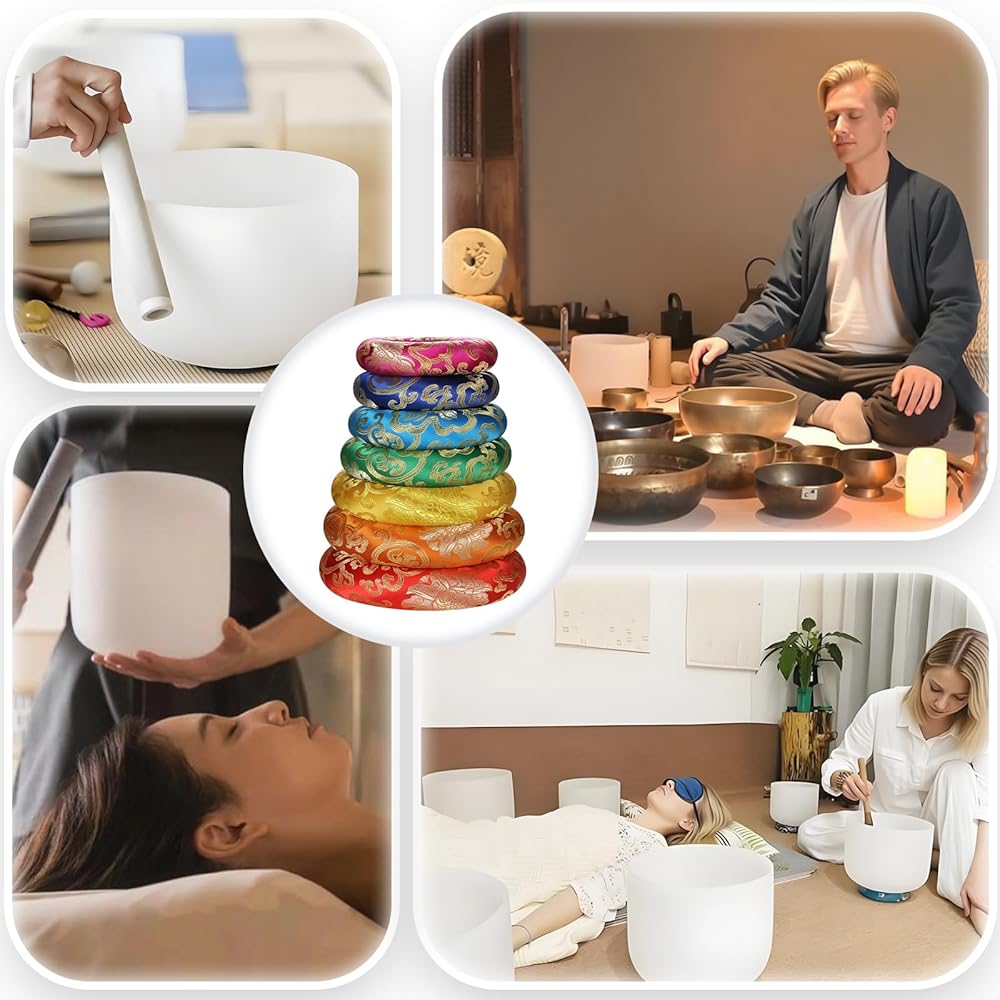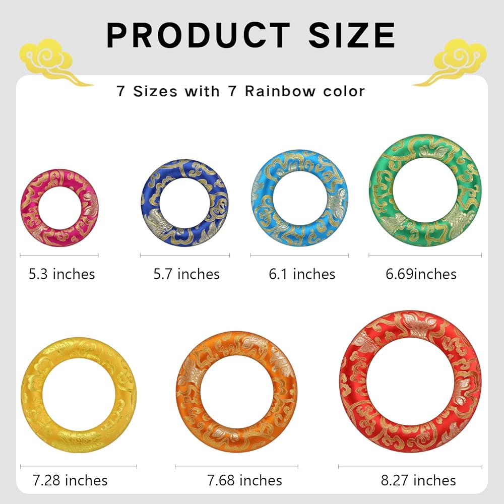 تطبيق واسع - تعمل مجموعة وسائد أوعية الغناء ذات الألوان السبعة بألوان قوس قزح بشكل لا تشوبه شائبة لكل من أوعية الصوت الكريستالية وأوعية الغناء التبتية، 7 مقاسات فكرة (5.3 بوصة، 5.7 بوصة، 6.1 بوصة، 6.69 بوصة، 7.28 بوصة، 7.68 بوصة، 8.27 بوصة) مناسبة لكل أوعية غناء كريستال وتبتي من 6 إلى 12 بوصة. مثالية لشفاء صوت التأمل وكعرض زخرفي، استوديو اليوغا الخاص بك، ومكان التأمل، وغرفة الشفاء الصوتية، والمزيد، إنها ملحقات وعاء الغناء التي يجب اقتناؤها.