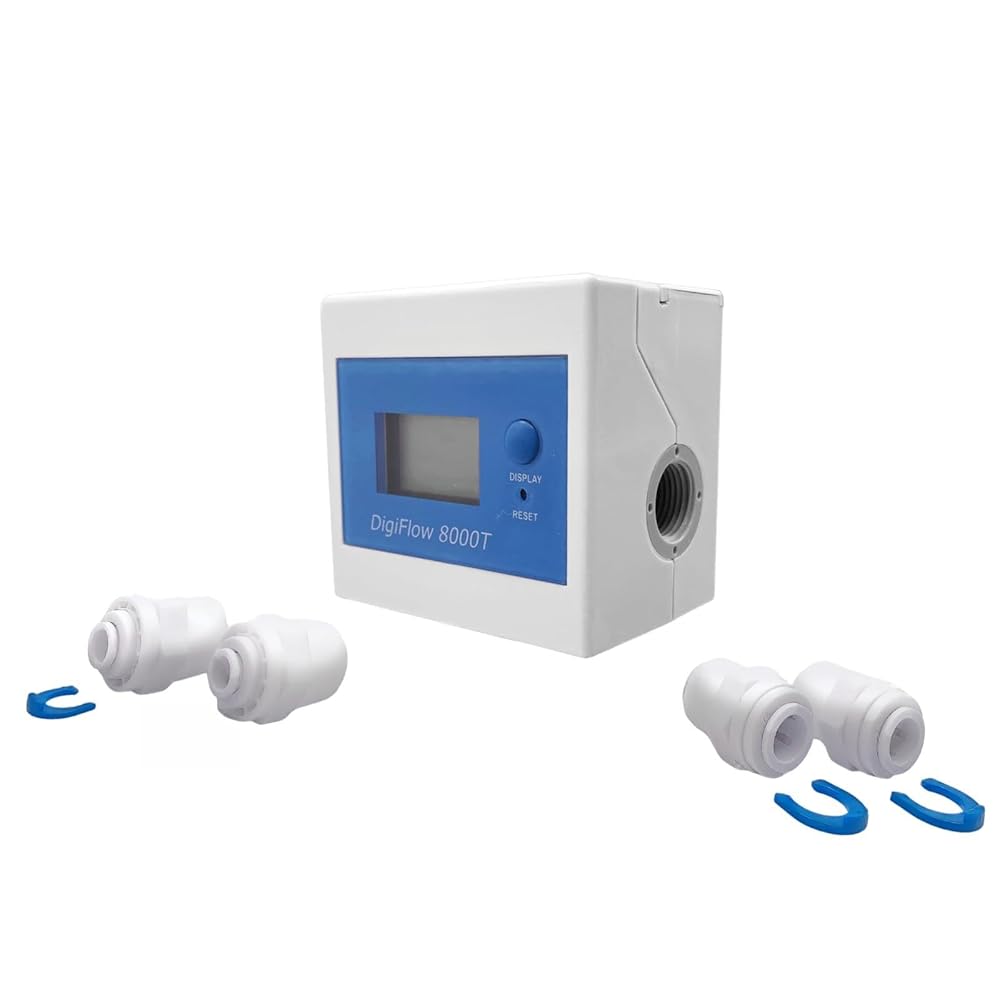 مقياس تدفق المياه الرقمي للري وخرطوم الحديقة - 3/8 بوصة GHT GPM مراقب استخدام المياه لمرشات العشب ووصلة RV والصنبور الخارجي، عداد دقيق لاستهلاك المياه