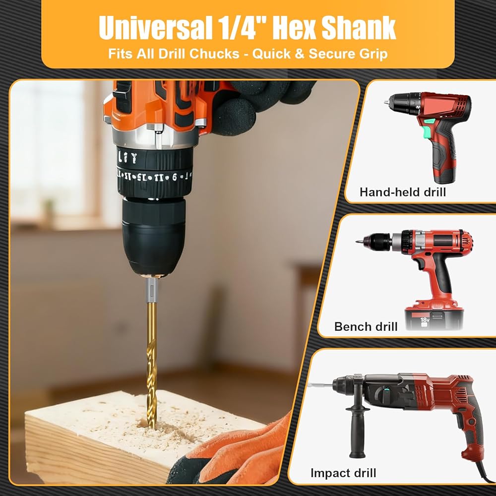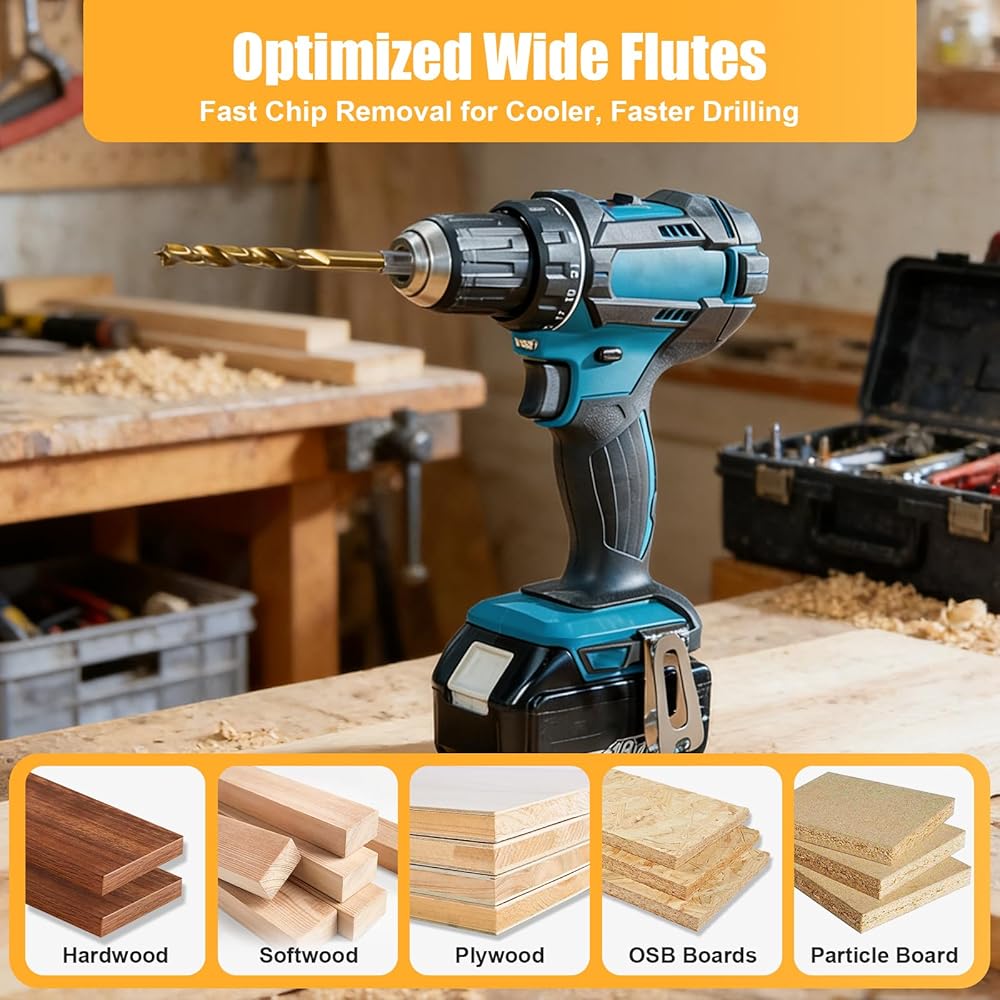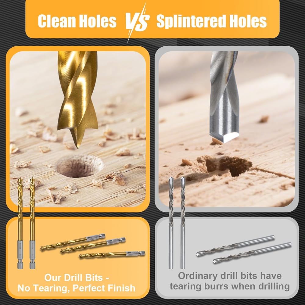 【متانة معززة مع فولاذ HSS-G】 مصنوعة من فولاذ HSS-G القوي وأرضية دقيقة لأداء طويل الأمد. تحافظ هذه القطع على الحدة من خلال الاستخدام الطويل وتوفر حفرًا موثوقًا به في الخشب الصلب والخشب الناعم والخشب الهندسي دون أن تتلاشى بسرعة.