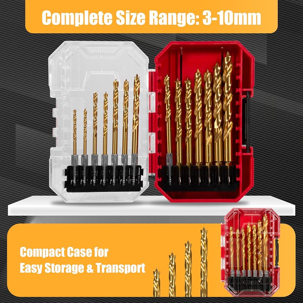 طقم لقم مثقاب سداسي الشكل HSS-G مكون من 14 قطعة للخشب، تصميم مزمار مزدوج لإزالة الرقائق بسرعة، مثالي للأعمال الخشبية الدقيقة والخزائن، مقاسات مترية (3-10 مم) مع حقيبة تخزين