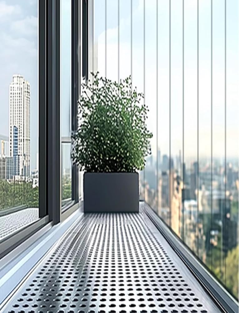 4.Enhance your balcony's safety with our Transparent Stainless Steel Plate. Designed for durability, this Water-Permeable solution not only transforms your outdoor space but also minimizes the risk of falling objects. Ideal for added security, it helps deter theft while maintaining a modern aesthetic. Perfect for those seeking both style and safety in their home.