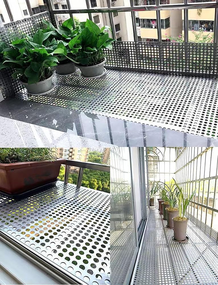 Discover the benefits of our Perforated Metal Sheets, designed to enhance your living space with both style and functionality. Crafted from high-quality 304 stainless steel, our perforated sheets not only provide essential safety features but also serve as a sophisticated decorative element for your balcony, garden, or patio.Maximize Your Space: Our stainless steel perforated plates are perfect for growing flowers, accommodating potted plants, or even providing a secure area for pets. With excellent ventilation and natural light, these balcony products create an ideal environment for your plants to thrive, while adding a touch of elegance to your outdoor area.Versatile Applications: Whether you need a safety net for your balcony, a protective cover for your stairs, or a stylish solution for your yard, our perforated metal sheets are incredibly versatile. They can easily support cat cages, shoes, and other items, making them an excellent choice for space-saving solutions.Product Details:- Name: Stainless Steel Perforated Sheet, Balcony Protective Net, Cat Balcony Nets- Material: 304 Stainless Steel- Color: Silver- Thickness: 0.8MM- Hole Diameter: 8MM- Hole Distance: 10MM- Features: Protection, Safety, Anti-fall, Leakproof, Anti-theft, Decorative- Suitable for: Balcony, Railing, Stairs, Garden, Window, Courtyard, Yard, PatioIncluded in the Package:- 1x Protective NetPlease Note: Slight measurement discrepancies of 1-2cm may occur due to manual measurement. The stainless steel mesh is the primary product; other items shown are for illustrative purposes only.