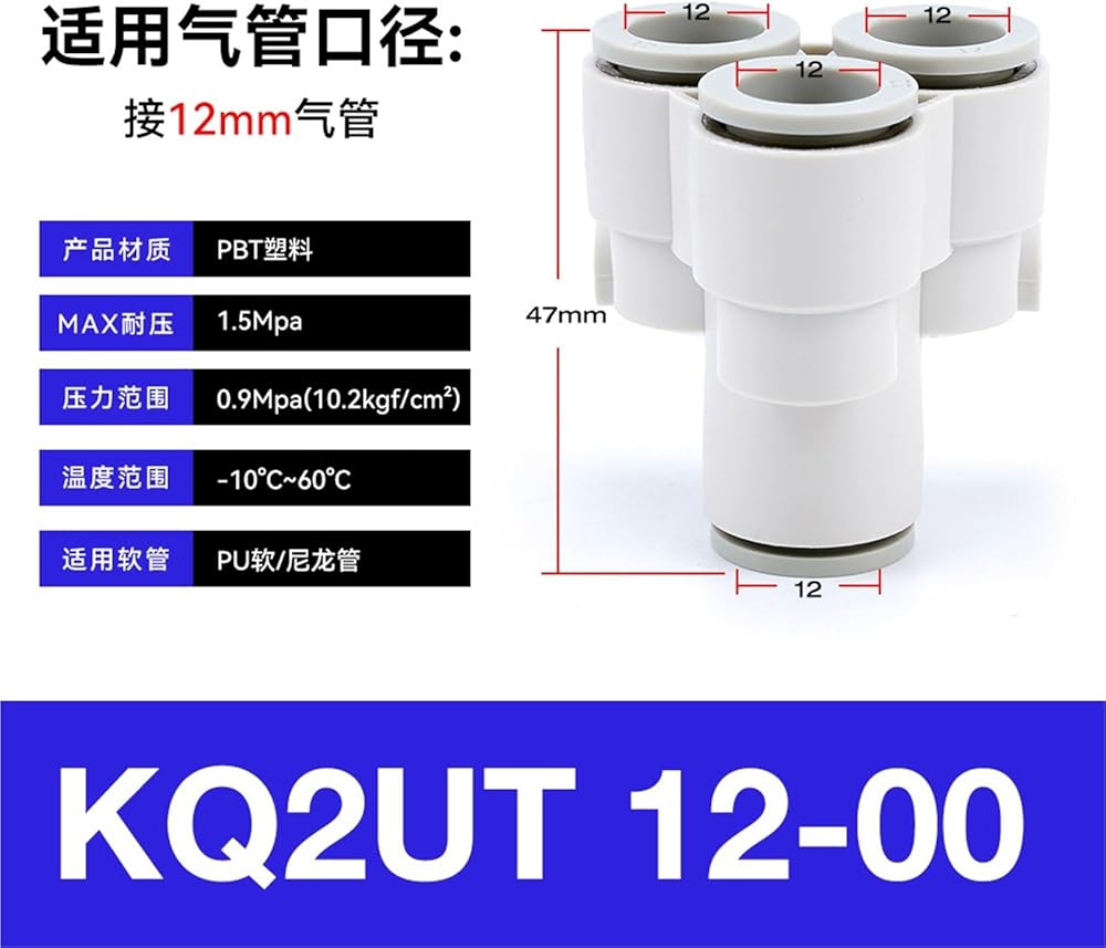 موصل هوائي بخمسة اتجاهات على شكل Y KQ2UD04-06 القصبة الهوائية سريع بقطر متغير PRG08-10 رباعي الاتجاهات 1 قطعة (四通KQ2UT12-00)