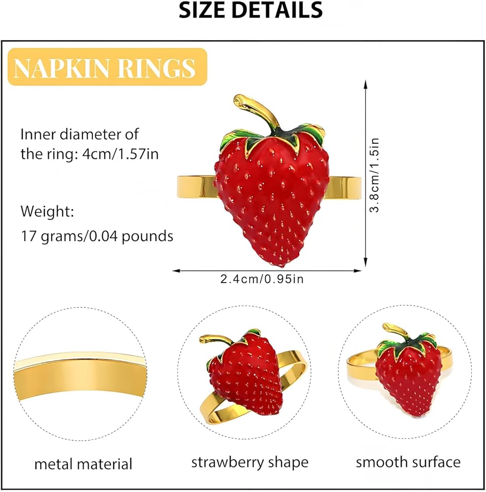 This 6-piece set offers excellent value, allowing you to create a beautifully coordinated tablescape. Whether you're hosting a special event or simply want to add some everyday elegance to your meals, these strawberry napkin rings deliver both style and practicality.