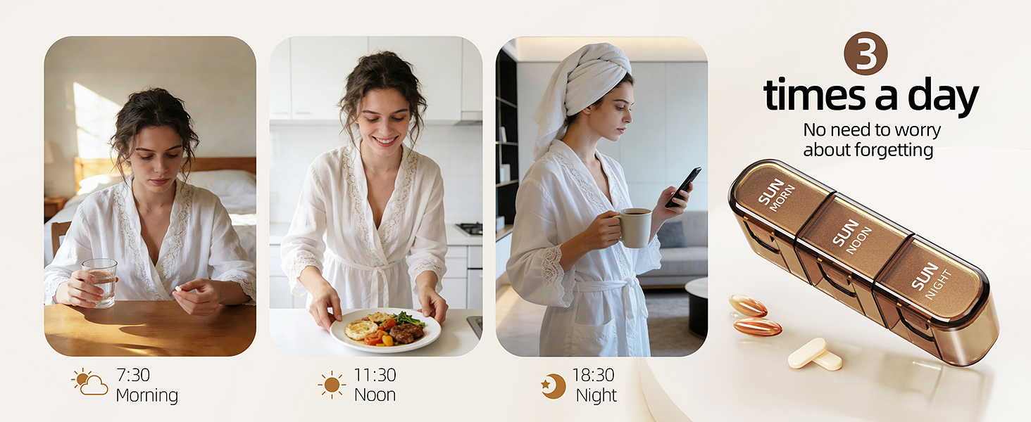• تصميم مقاوم للضوء: بالمقارنة مع النماذج الشفافة العادية، فإن صندوق الأقراص الشفاف الخاص بنا يحجب أشعة الشمس والضوء القوي بشكل فعال بينما يسمح لك بالتحقق بوضوح من الجرعة بالداخل دون فتح الغطاء، مما يضمن ثبات فعالية الدواء واستخدام أكثر ملاءمة.