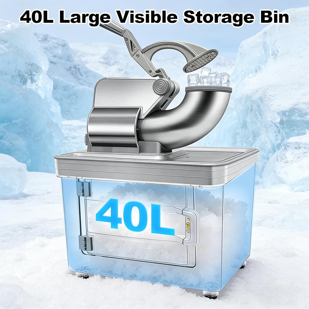 • صندوق تخزين ذو فتحة جانبية كبيرة سعة 40 لترًا: تم تصميم هذه الوحدة التجارية لآلة صنع الثلج عالية السعة لتوفير الراحة، وتتميز بصندوق تخزين سعة 40 لترًا مع باب وصول جانبي لاسترجاع الثلج بسرعة. تقلل السعة الكبيرة من تكرار إعادة التعبئة، مما يجعل ماكينة حلاقة الثلج هذه خيارًا فعالاً للغاية لساعات الخدمة المزدحمة.