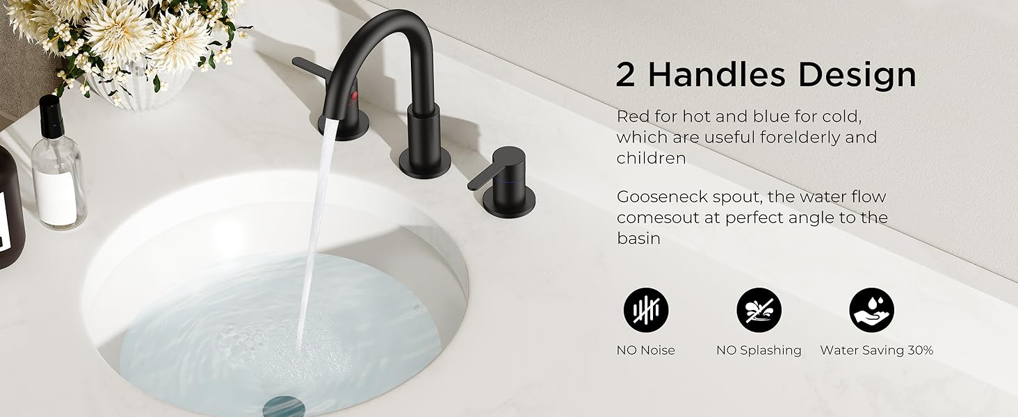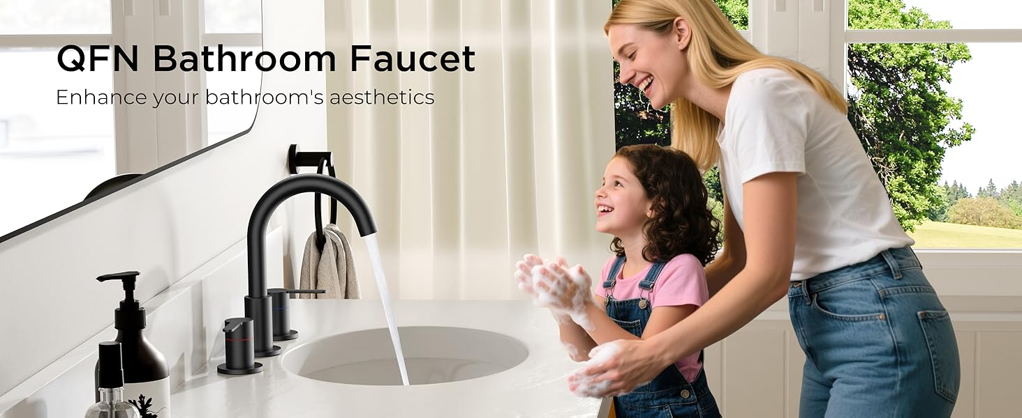• تركيب سهل بثلاثة فتحات: تم تصميم صنابير الحمام السوداء QFN ذات 3 فتحات لانتشار قياسي 8 بوصة ولكنها تناسب معظم الأحواض بتكوينات من 6 إلى 12 بوصة. تشتمل المجموعة الكاملة على مجموعة تصريف منبثقة مطابقة وجميع الأجهزة الضرورية. يمكنك تحقيق إعداد احترافي مانع للتسرب في أقل من 30 دقيقة بدون أدوات خاصة أو سباك، مما يجعله صنبور حوض الحمام المثالي للترقيات أو الإيجارات أو التجديدات السريعة.