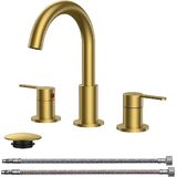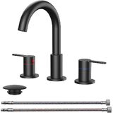 حنفيات حمام QFN باللون الأسود غير اللامع بثلاث فتحات، صنبور حوض واسع الانتشار مقاس 8 بوصات مع مهوية، مقبضان، صنبور قوس عالٍ دوار 360 درجة، لمسة نهائية خالية من البقع، معتمد من cUPC NSF ومتوافق مع CEC وDOE in Kuwait